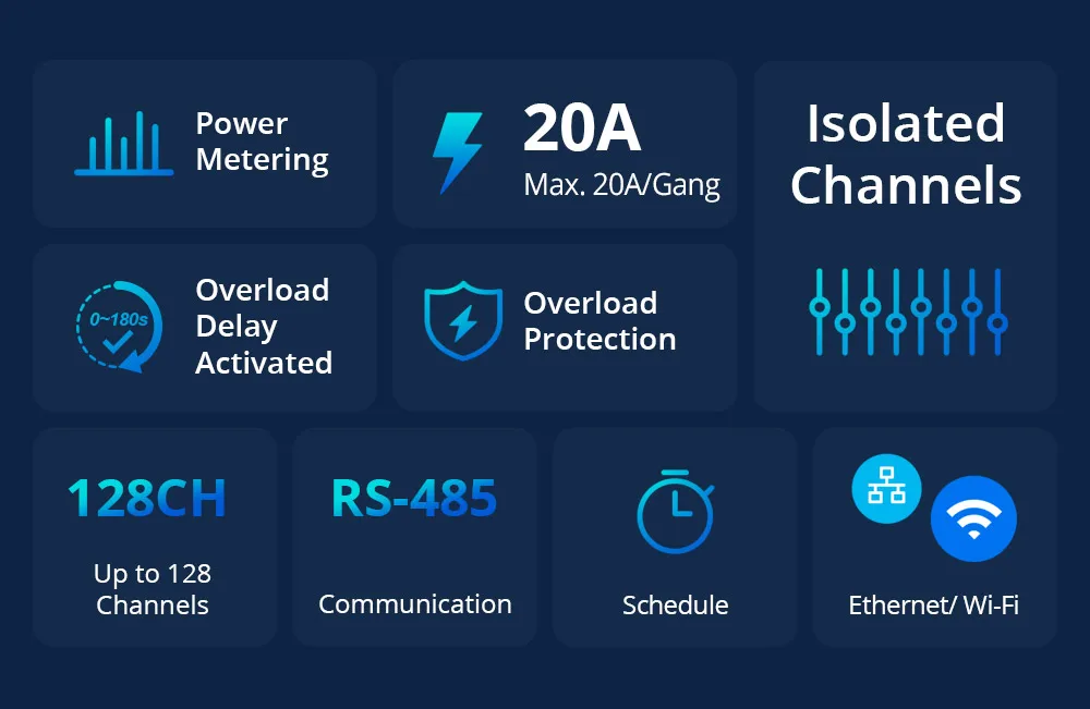 과부하 보호가 활성화되면 전기 제품이 타 버릴 염려가 없으므로 잠재적 인 안전 위험을 제거 할 수 있습니다. 또한 가짜 트리거링을 피하기 위해 과부하 지연을 활성화 할 수도 있습니다. 하나의 SPM-Main에 32SPM-4 릴레이를 연결할 수 있습니다. 각 SPM-4Relay 임차인이 전기 요금 공유에서 문제를 해결할 수 있도록 4 개의 분리 된 채널이 있습니다. 각 채널은 20A 의 최대 전류를 지원할 수 있으며 높은 전력 부하를 두려워하지 않습니다.