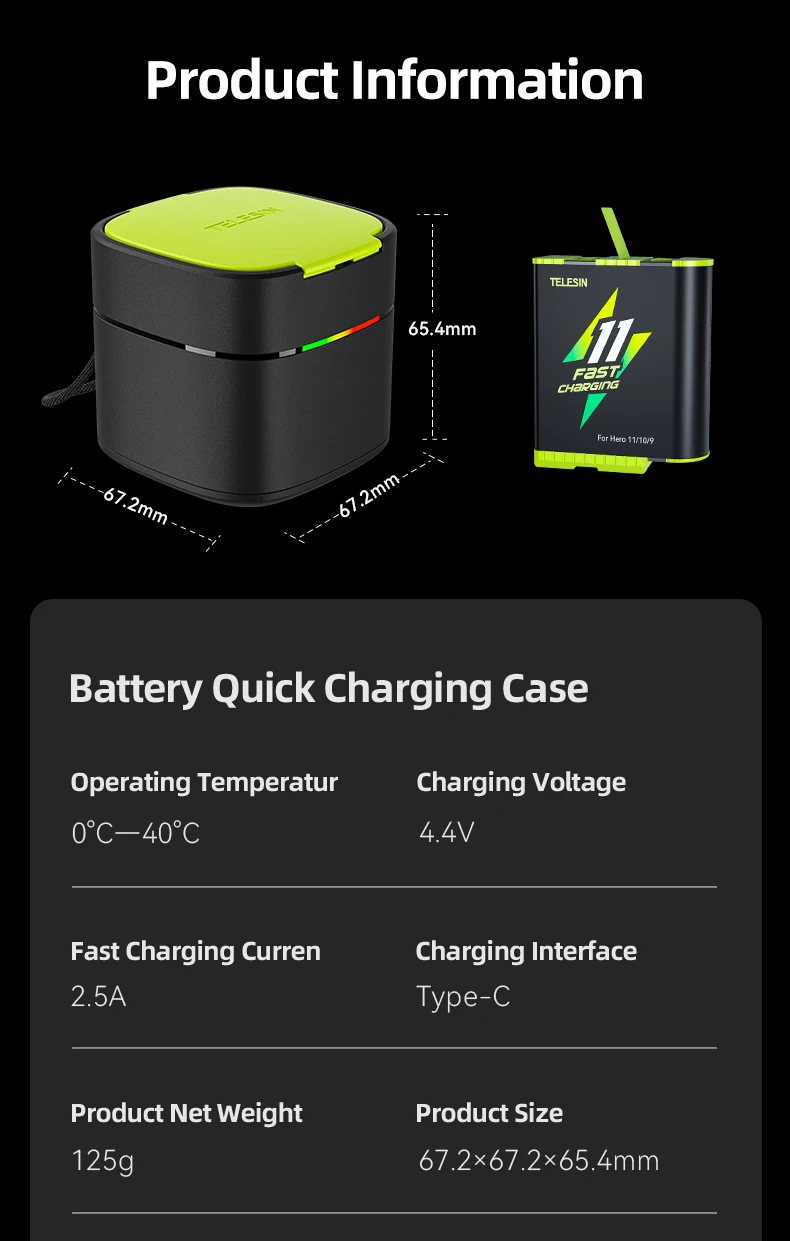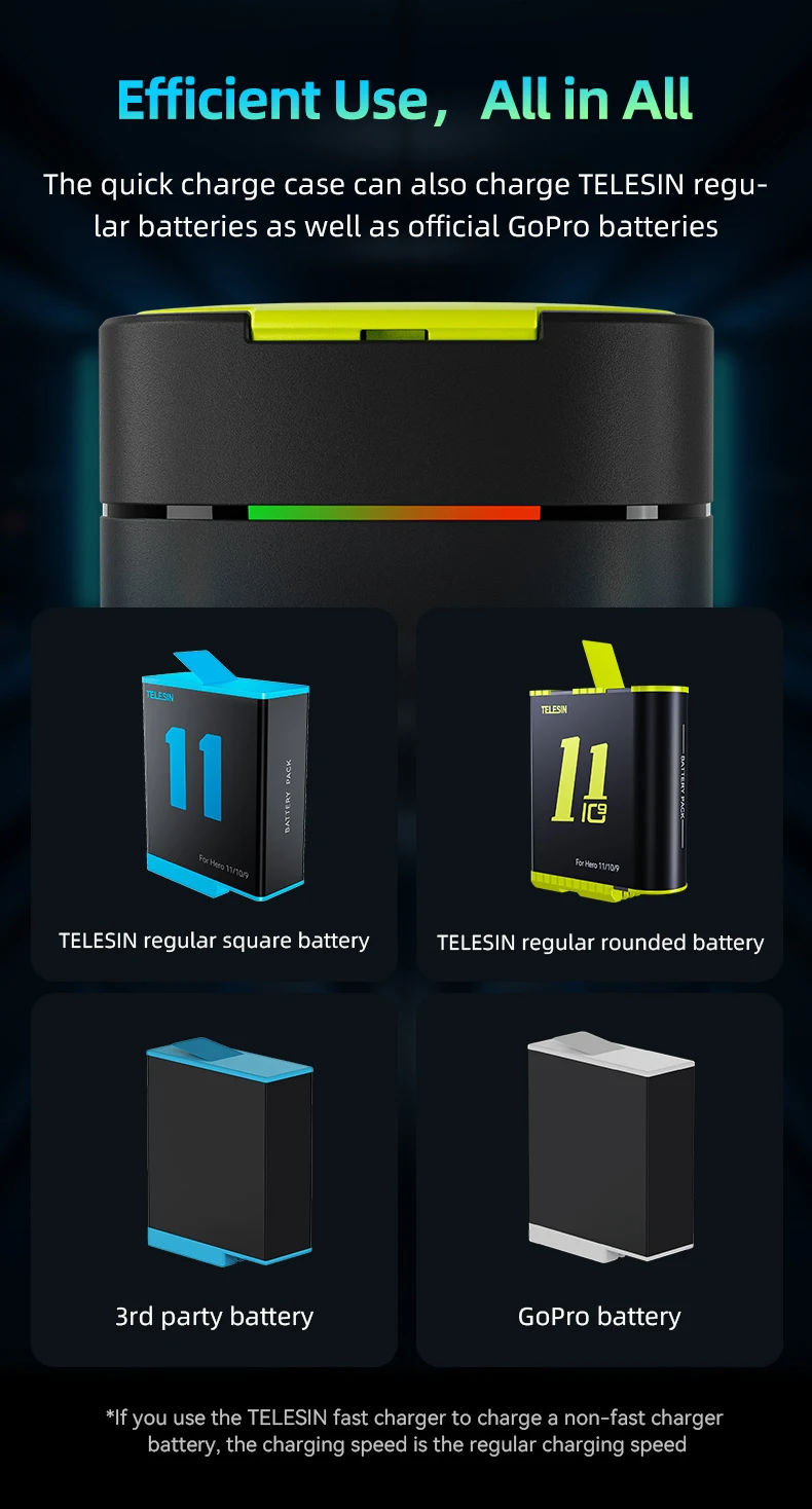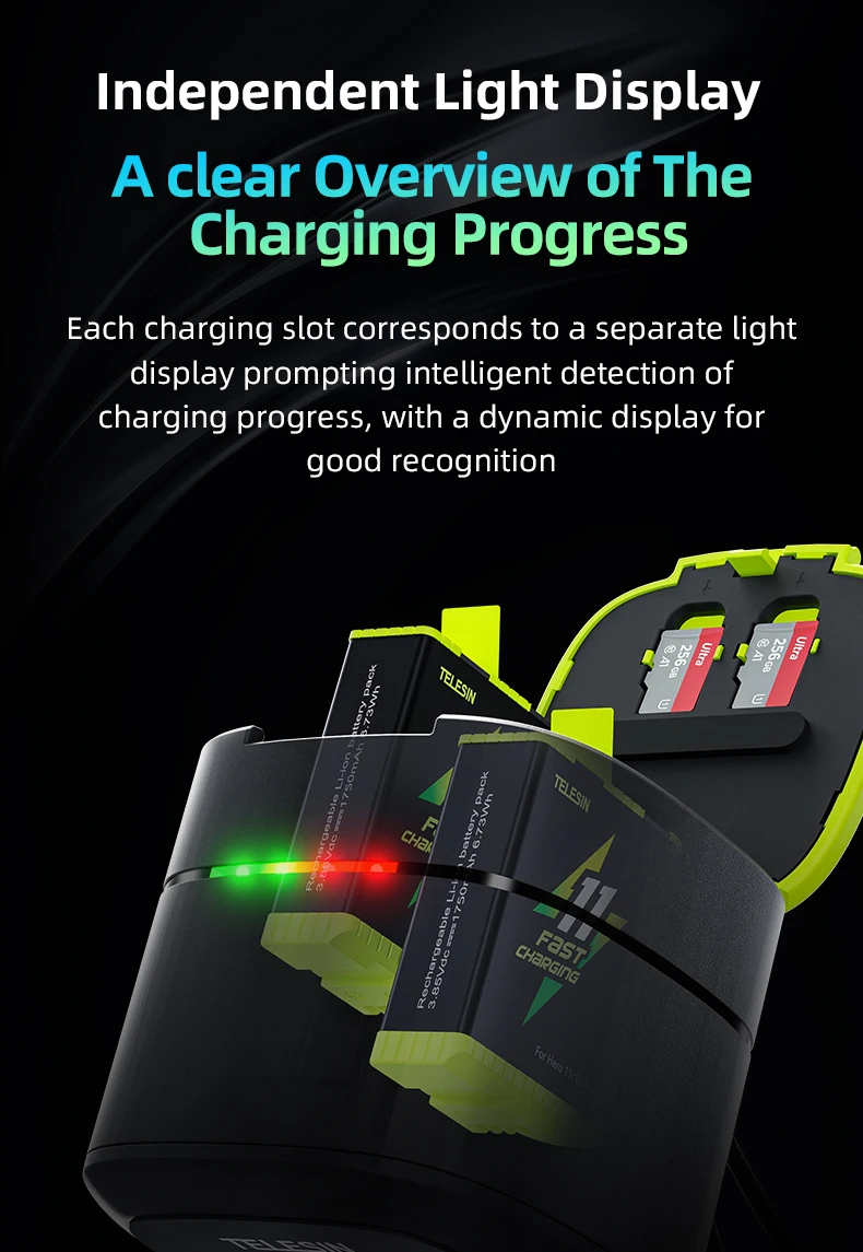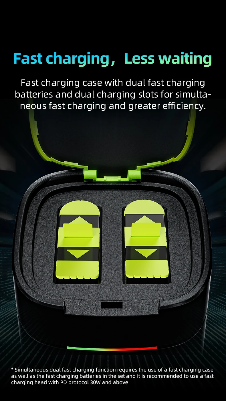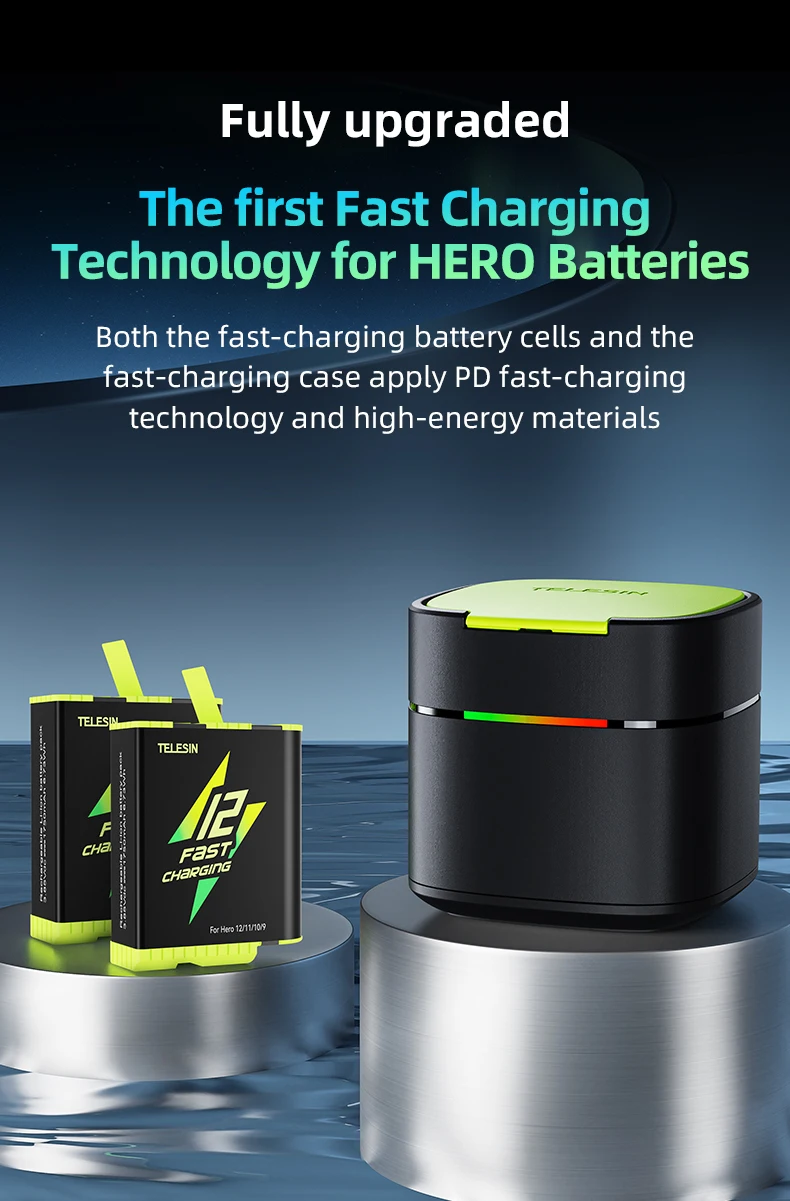 1. 최초의 GoPro 배터리 고속 충전 기술 고속 충전 배터리 셀과 고속 충전 케이스는 모두 PD 고속 충전 기술과 고 에너지 소재를 적용합니다.