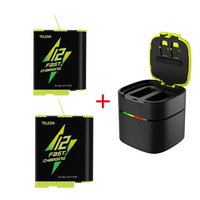 TELESIN 1750 mAh 고속 충전 배터리 GoPro Hero 12 11 10 9 옵션 2 방법 고속 충전기 상자 TF 카드 보관함