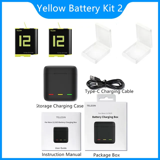 TELESIN 1750 mAh 배터리 고프로 영웅 12 11 10 9 3 방법 고속 충전기 상자 TF 카드 저장 고프로 영웅 액션 카메라 액세스