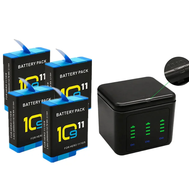 1. GoPro 영웅 11/10/9 에 적용됩니다. 한 번에 3 개의 배터리를 충전 할 수 있으며 D & # x27; 배터리; 원산지를 지원합니다.