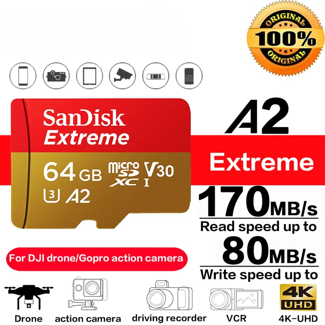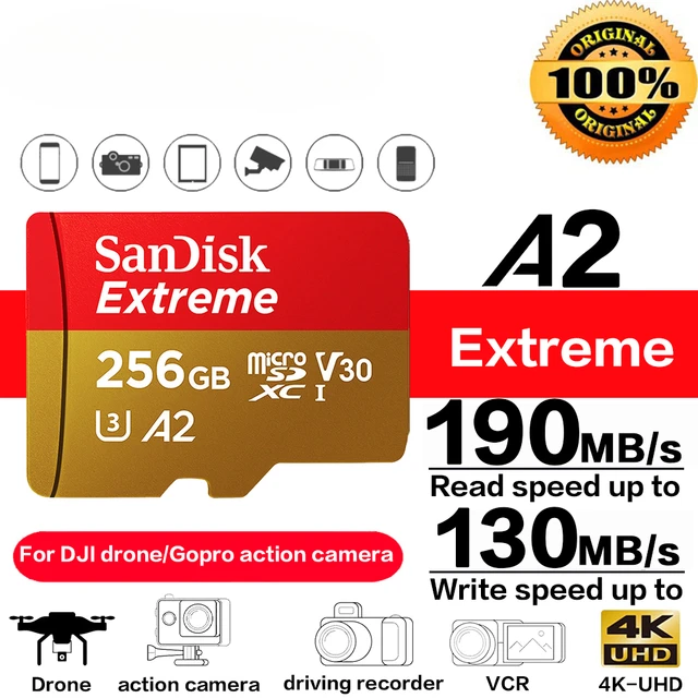 마이크로 SD 카드 A2Read 속도 190 M/s 메모리 카드 익스트림 마이크로 SD UHS-I TF 카드 U3 V30 32GB 64GB 128GB 256GB 지원 GOPRO 4K SDSQXAA-0128G