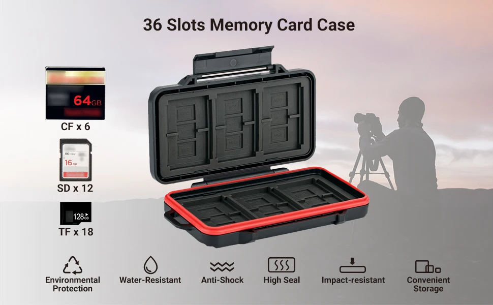 A1: 이 메모리 카드 케이스가 Nano SD 카드에 맞지 않습니다. 그러나 6 CF /Cfast, 12 SD /SDXC /SDHC 및 18 마이크로 SD /TF 카드를 동시에 저장할 수 있습니다.