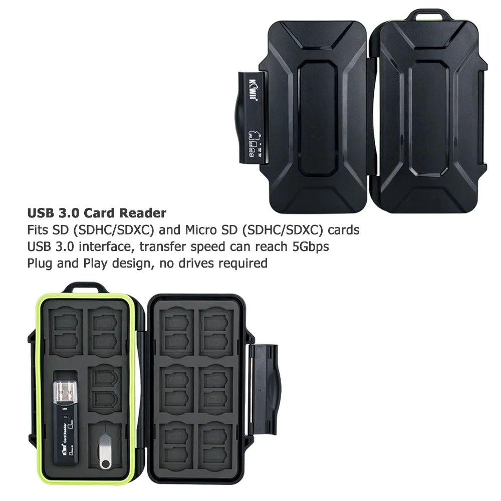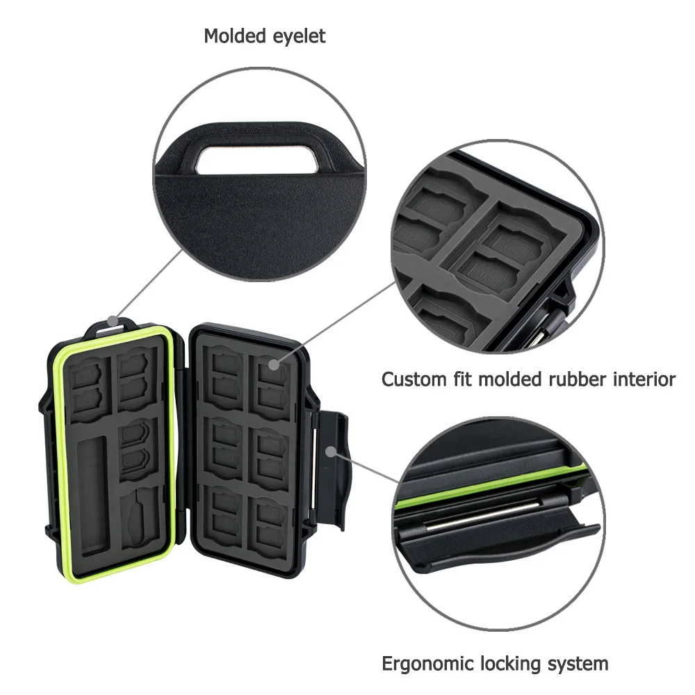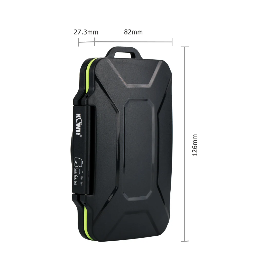하이 퀄리티 친환경적인 소재로 제작된 KIWIFOTOS KC 시리즈 메모리 카드 케이스는 먼지, 충격, 더러움 및 물 튀김으로부터 메모리 카드를 효과적으로 보호할 수 있습니다. 고강도 ABS 쉘은 견고하고 내구성이 있습니다. 맞춤 맞춤 성형 고무 인테리어는 충격과 충격을 크게 줄여 메모리 카드를 더 잘 보호 할 수있는 충격 흡수의 특성을 가지고 있습니다. 실리콘 씰 링을 사용하여 케이스는 먼지와 물을 효과적으로 차단할 수 있습니다. 또한, 인체공학적 잠금 시스템은 쉽게 열고 닫을 수 있습니다. 성형 된 구멍과 함께, 케이스를 편리하게 가져갈 수 있습니다. KIWIFOTOS KC 시리즈 메모리 카드 케이스는 메모리 카드를 보관하기위한 좋은 파트너가 될 것입니다.