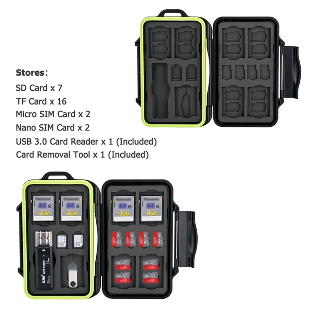 SD x 7 TF x 16 마이크로 SIM x 2 나노 SIM x 2 USB 카드 리더 x 1 (포함) 카드 제거 도구 x 1 (포함) |