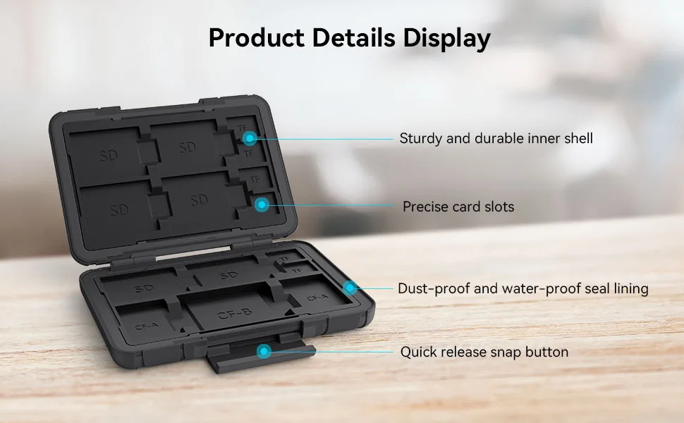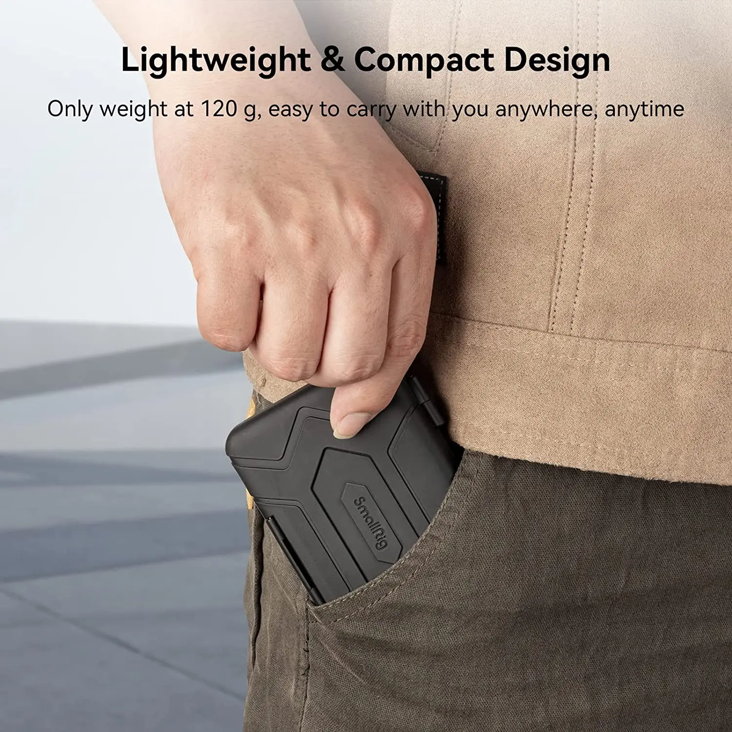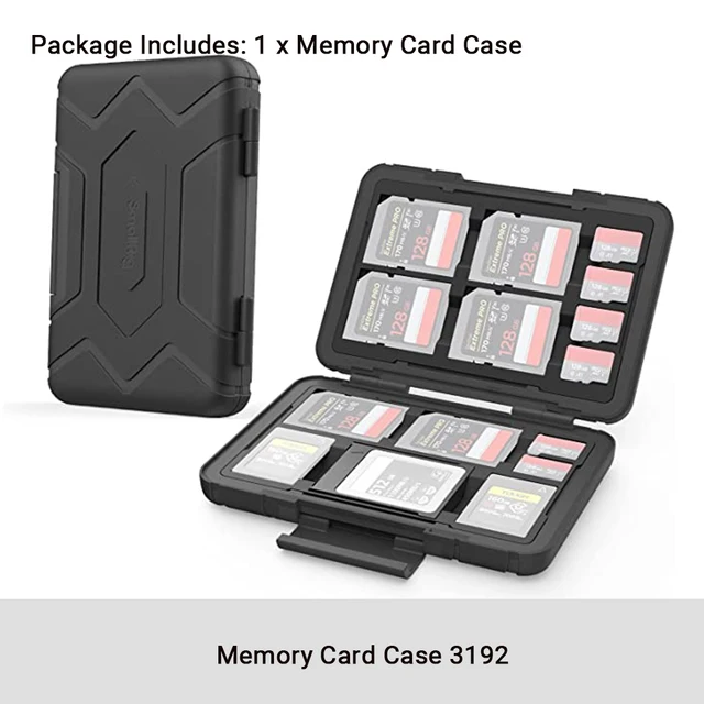 SmallRig 메모리 카드 케이스 3192메모리 카드의 저장 및 보호를 위해 설계되었습니다. 예쁘고 고르지 않은 미끄럼 방지 질감으로 편안함을 느끼며 SD 카드 6 개, 마이크로 SD 카드 6 개, CFexpress Type A 카드 2 개, 1 CFexpress B 형 카드 (또는 XQD 카드) 를 동시에 사용하십시오. 케이스에는 조작하기 쉬운 온/오프 패스너, 비산이나 먼지를 방지하는 밀봉 가능한 실리콘 라이닝, 식별을 위해 호환되는 카드의 이름이 인쇄 된 카드 홀더, 충격 방지 카드 트레이 포장 및 고정 카드. 2m 낙하 테스트를 통과하면이 항목은 실수로 떨어지는 것을 효과적으로 방지 할 수 있습니다.
