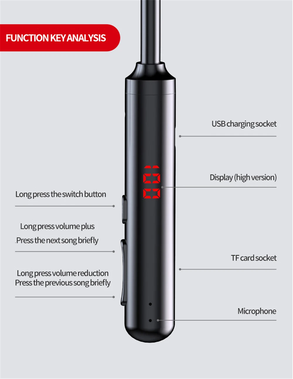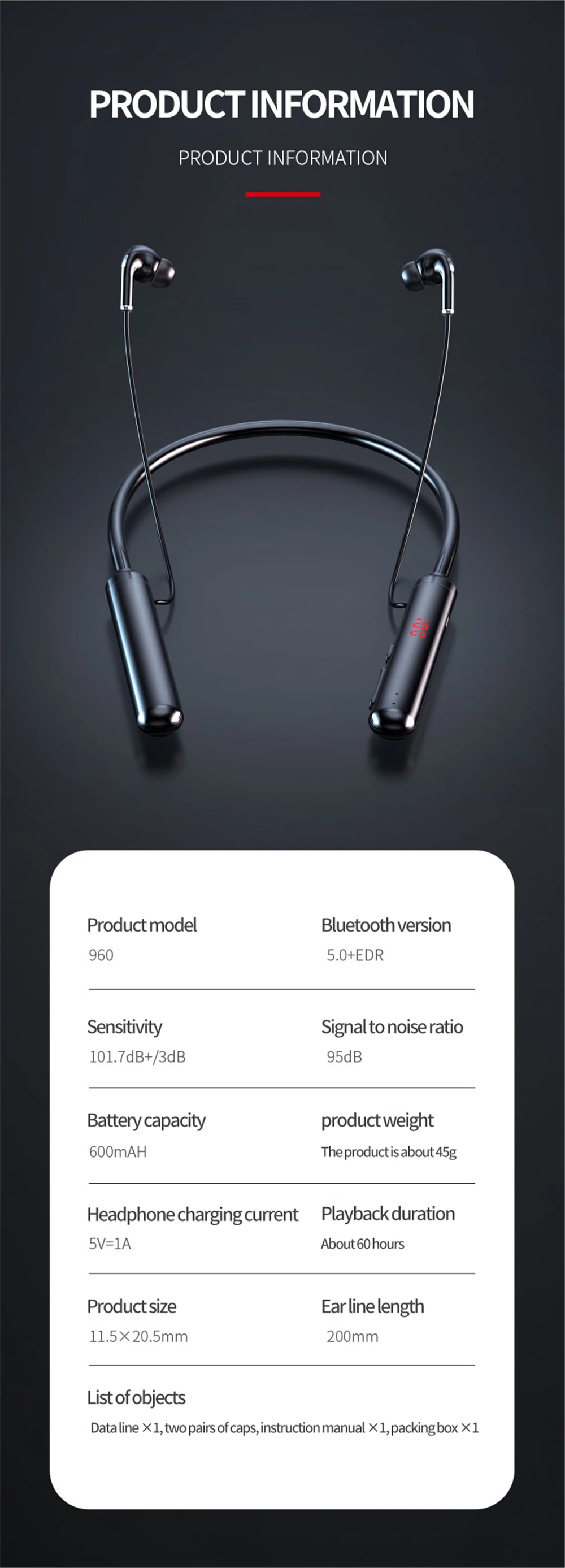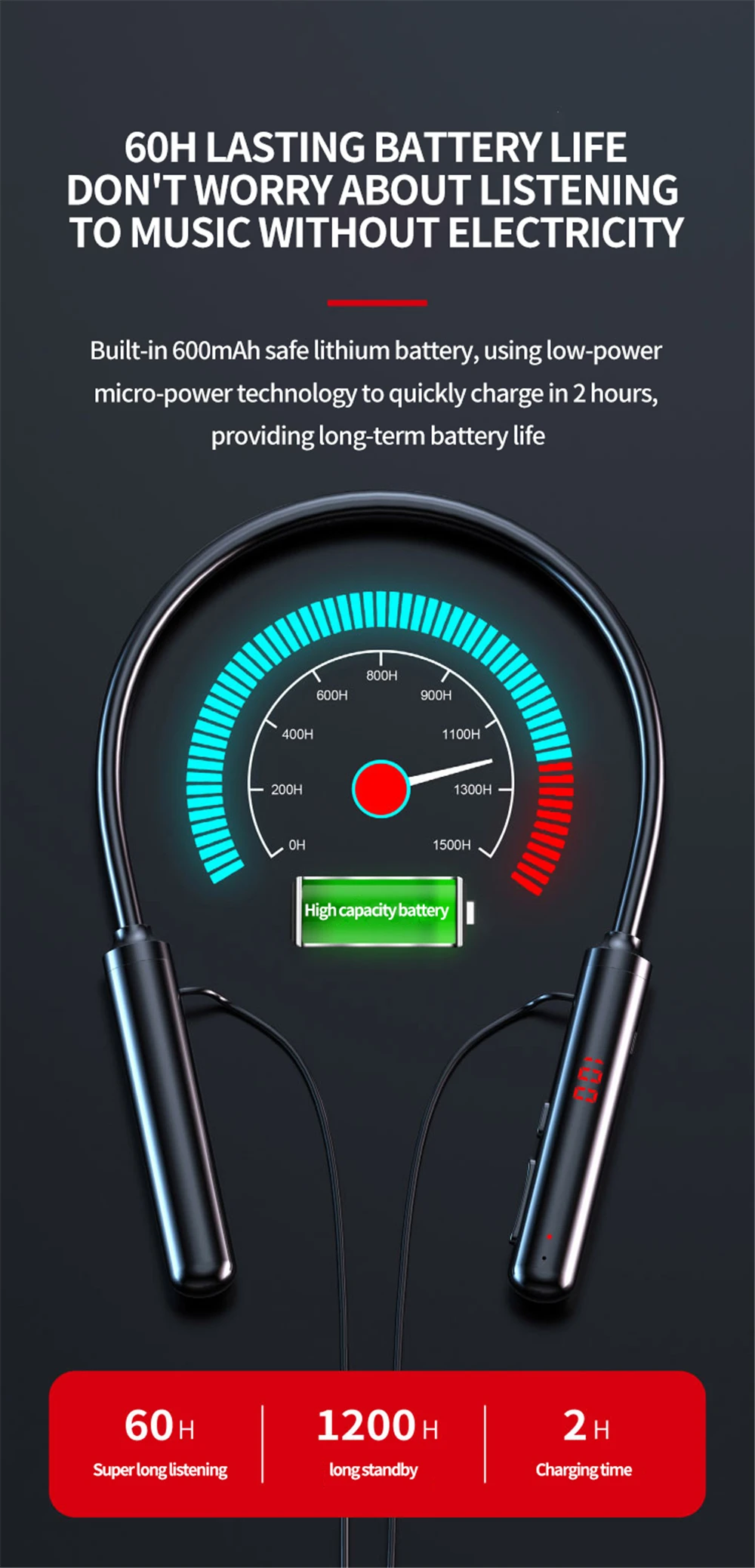 블루투스 호환 버전: 5.0 배터리 용량: 600MAH 전송 거리: 10M 최대 재생 시간: 60 시간 충전 시간: 약 40 분 LED 전원 디스플레이 TF 카드 지원 32-128G 음악 재생 (TF 카드는 포함되지 않음)
