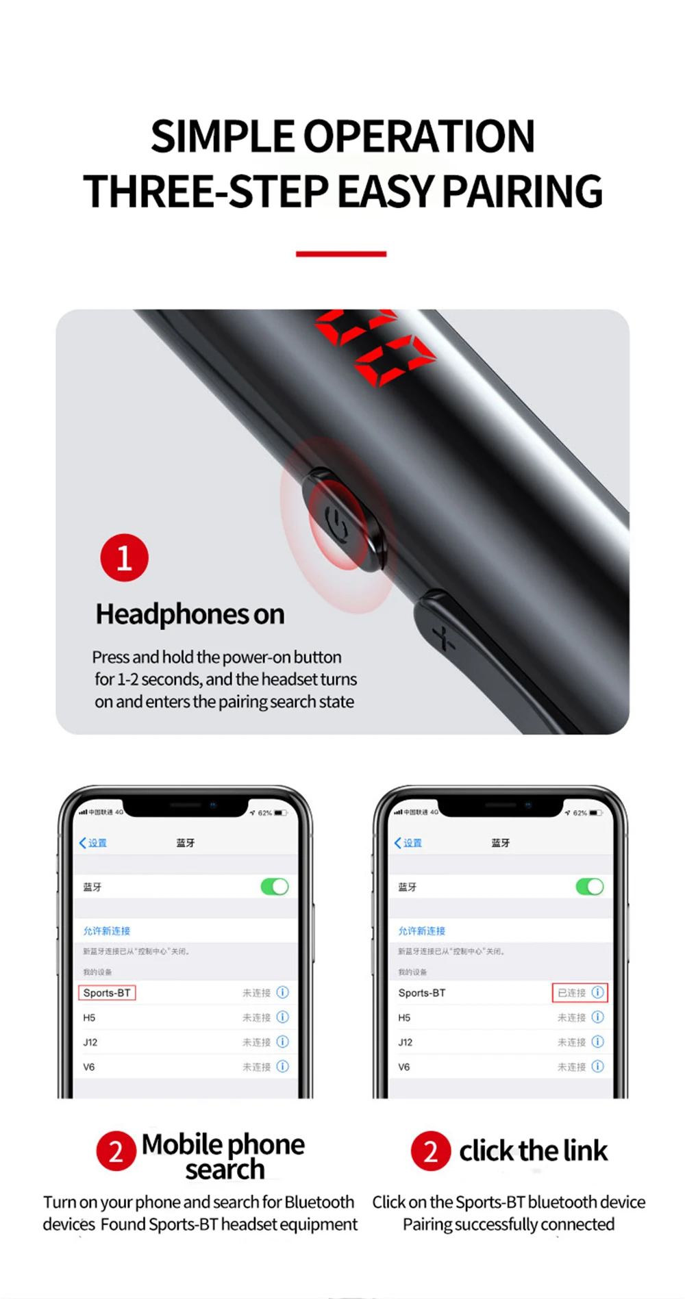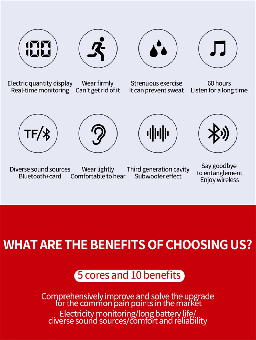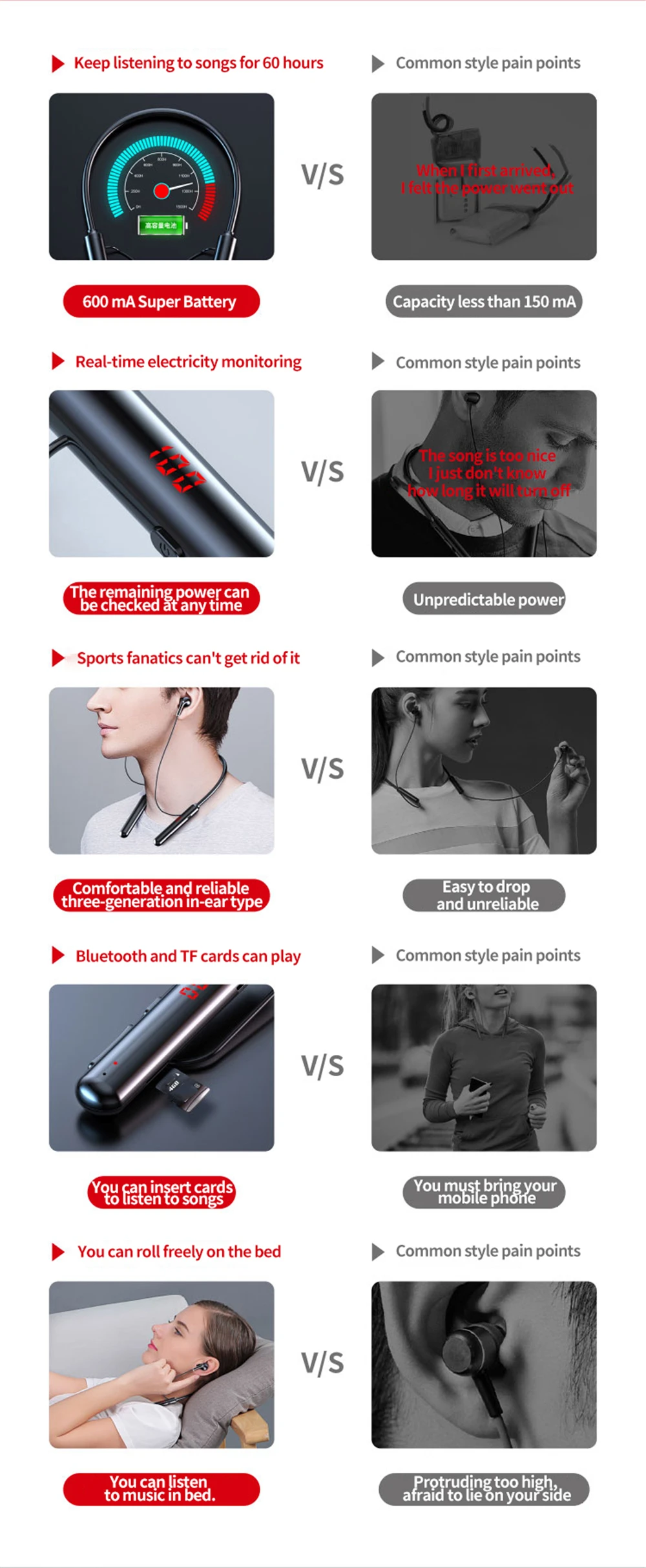 블루투스 호환 버전: 5.0 배터리 용량: 600MAH 전송 거리: 10M 최대 재생 시간: 60 시간 충전 시간: 약 40 분 LED 전원 디스플레이 TF 카드 지원 32-128G 음악 재생 (TF 카드는 포함되지 않음)