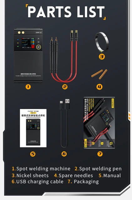 Fnirsi NEW SWM-10 배터리 스폿 용접기 MAX 0.25mm 니켈 시트 18650 배터리 도구 컬러 스크린 휴대용 휴대용 용접기 DIY 4
