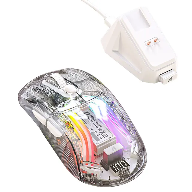 무선 휴대용 마우스 RGB 조명 3 모드 전자 경쟁 마우스 블루투스 호환 5.0/2.4G/USB-C PC 노트북 데스크탑 투명 특징: 1. 편안한 그립:게이밍 마우스는 125.00x64.00x42.00mm (4.92x2.52x1.65 인치) 크기로 다양한 손 크기에 편안한 그립감을 제공합니다. 2. RGB 조명 효과:게이머 마우스는 생생한 RGB 조명 효과를 제공하여 게임 경험에 흥분과 개인화를 더합니다. 3. 다중 연결 옵션:마우스는 2.4G 무선, Bluetooth 호환 5.0 및 TYPE-C 유선 연결을 포함한 다양한 연결 방법을 지원하여 다양한 사용자 선호도를 보장합니다. 게임 마우스로 원하는 연결 방법을 자유롭게 선택할 수 있습니다. 4. 광학 센서 및 속도:당사의 휴대용 마우스에는 고급 Original Phase 3212 광학 센서가 장착되어 정확한 추적 및 초응답 성능을 제공합니다. 추적 속도가 60ips 인이 센서는 정확한 커서 이동을 보장하여 강렬한 게임 세션 중에 정확한 제어 기능을 제공합니다. 5. 무선 연결:게이밍 마우스는 Microsoft, MAC, Android 및 기타 운영 체제와 호환되는 블루투스 호환 5.0 연결을 지원합니다. 또한 USB 2.4 G를 통해 무선으로 연결할 수 있으며 XP, Vista, Win7, WIN8, WIN10 및 WIN11 운영 체제를 지원합니다. 게임 마우스와 쉽고 안정적인 연결을 경험할 수 있습니다. 사양: 참고: