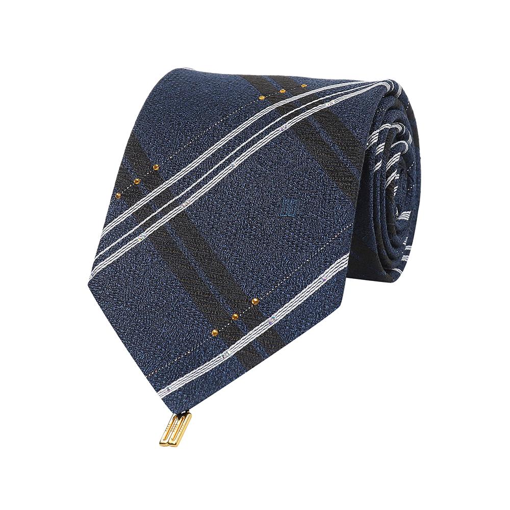 - 체크 패턴과 빛나는 큐빅 디테일의 조화가 돋보이는 넥타이.