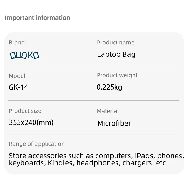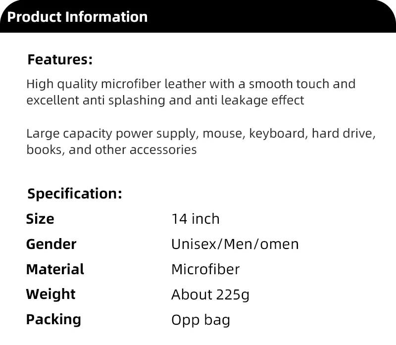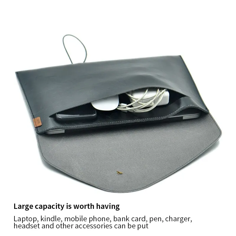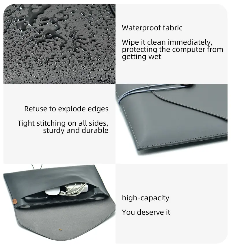 이 노트북 가방은 PU 에더 소재로 만들어졌으며 가볍고 내구성이 뛰어납니다. 방수 및 내마모성.