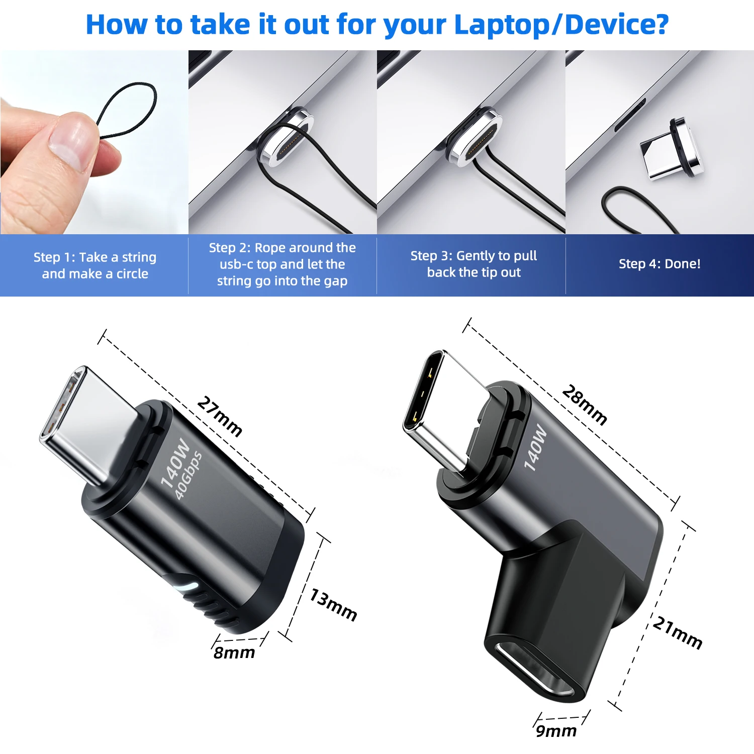 저스트앳 140W USB4.0 마그네틱 어댑터 USB c-type C 40Gbps 고속 충전 자석 변환기 케이블 커넥터 8K 60H