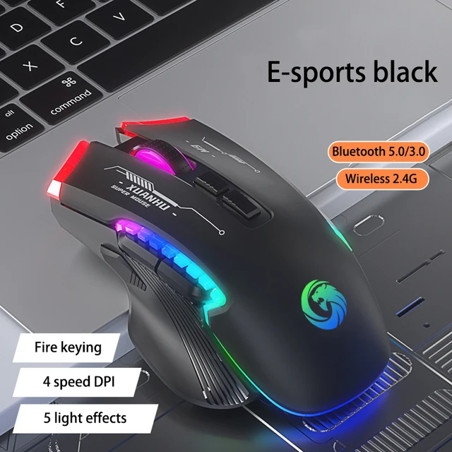 무선 마우스 노트북 게이밍 블루투스 Esports 용 마우스용 충전식 RGB 발광 음소거 단추 C타입 4 기어 DPI