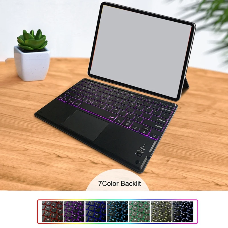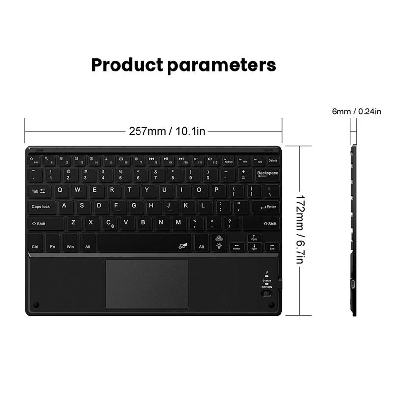 [터치 패드 포함]-터치 패드가있는 블루투스 태블릿 키보드. 왼쪽 및 오른쪽 클릭 컨트롤 키보드. 장비 조작이 쉽습니다.