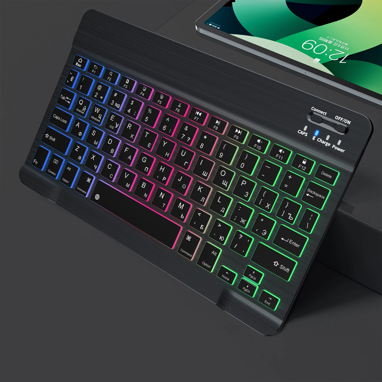 Ipad 키보드, 태블릿 용 블루투스 무선 키보드, 러시아어로 된 미니 백라이트 키보드 ipad pro 12 9 air 4 IOS 안드로이드 폰
