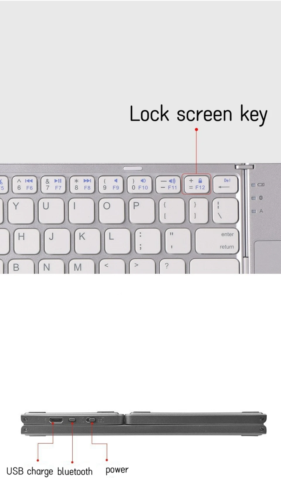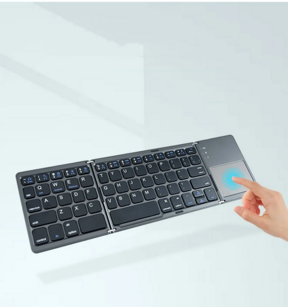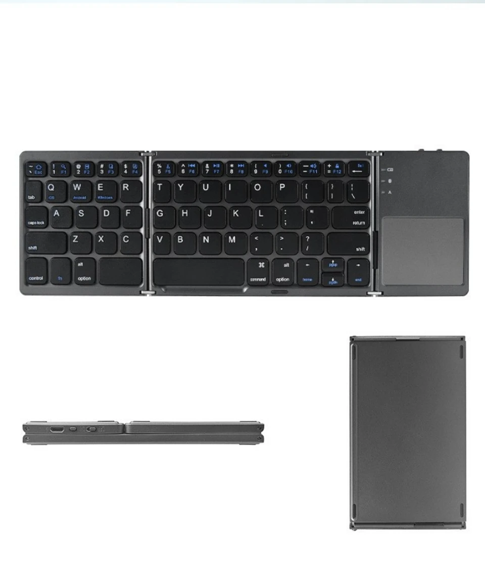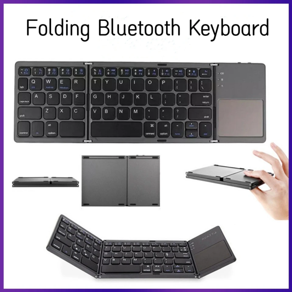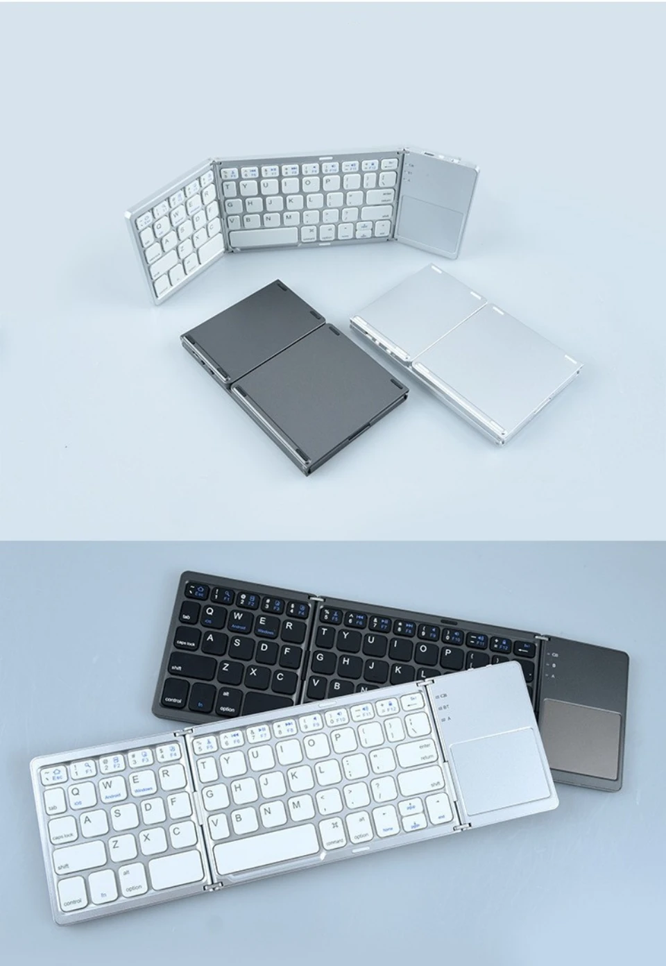 무선 접이식 키보드 블루투스 호환 키보드 64 키 터치 패드 키패드 iOS 용 충전식 Windows Android 태블릿 전화