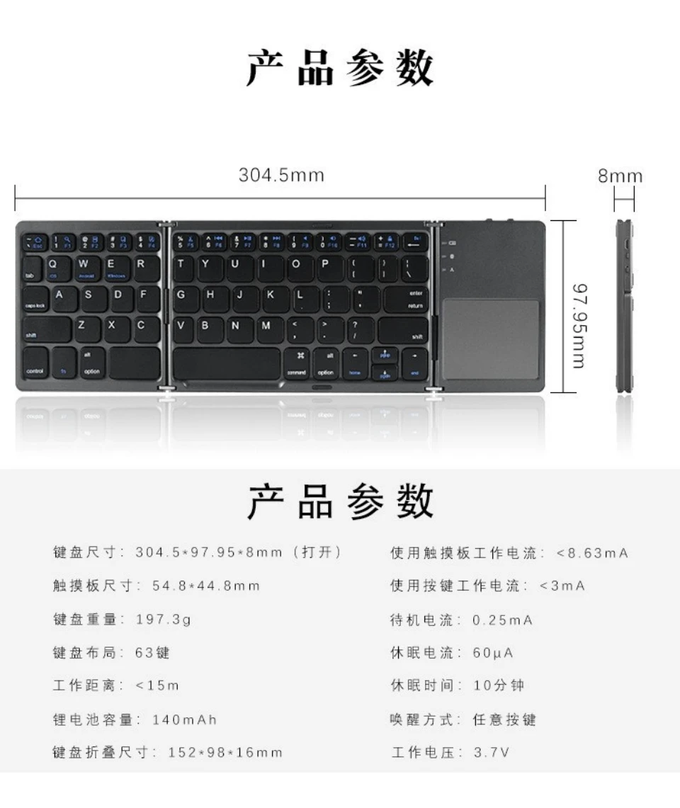 작고 휴대하기 편리한 무선 Bluetooth 접이식 키보드입니다. 휴대 전화 태블릿에 적합합니다.