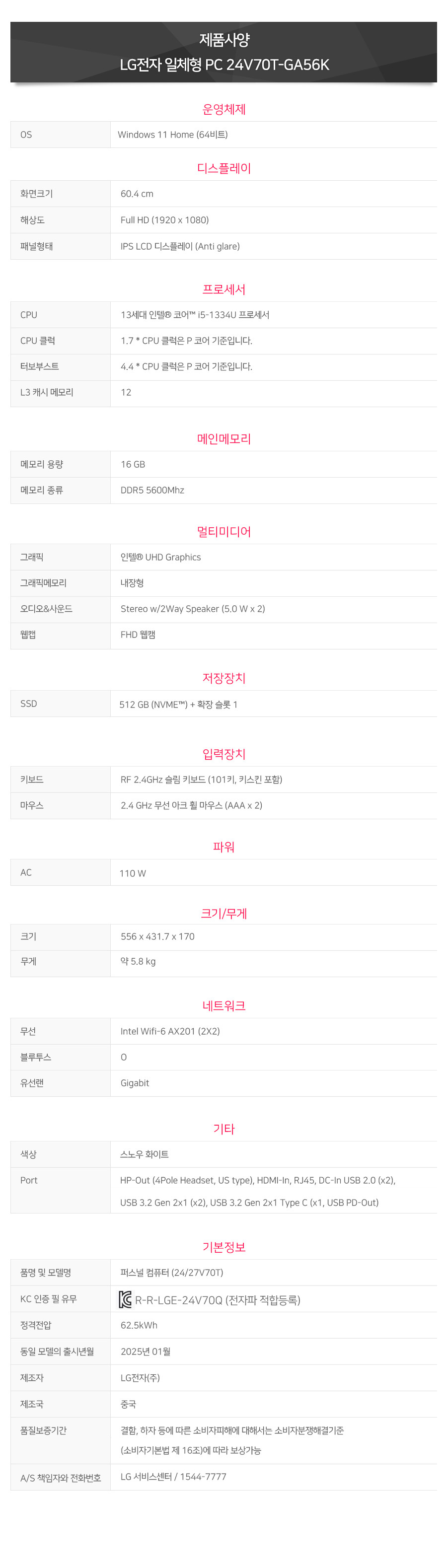 LG전자 일체형 PC 24V70T-GA56K 최저가판매