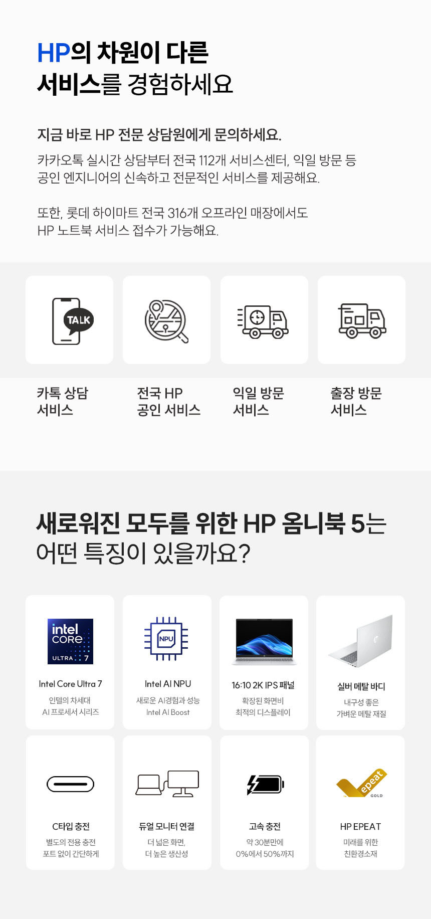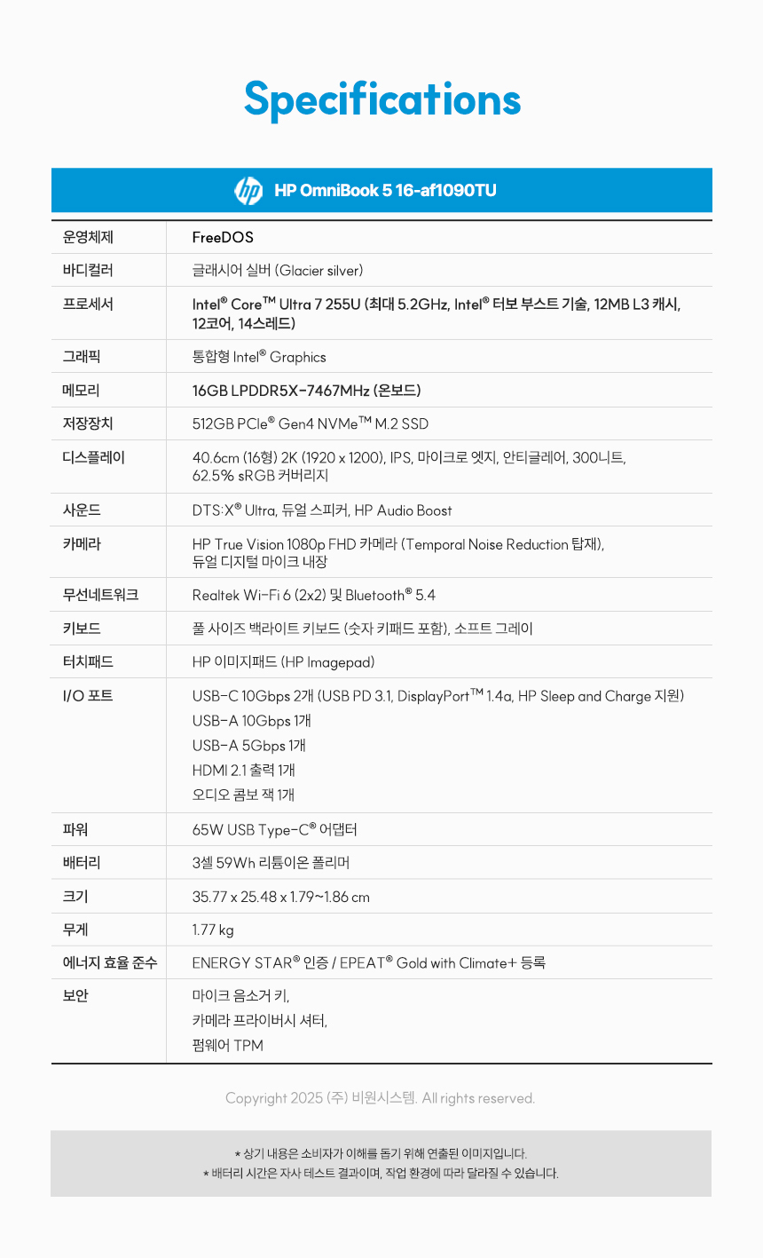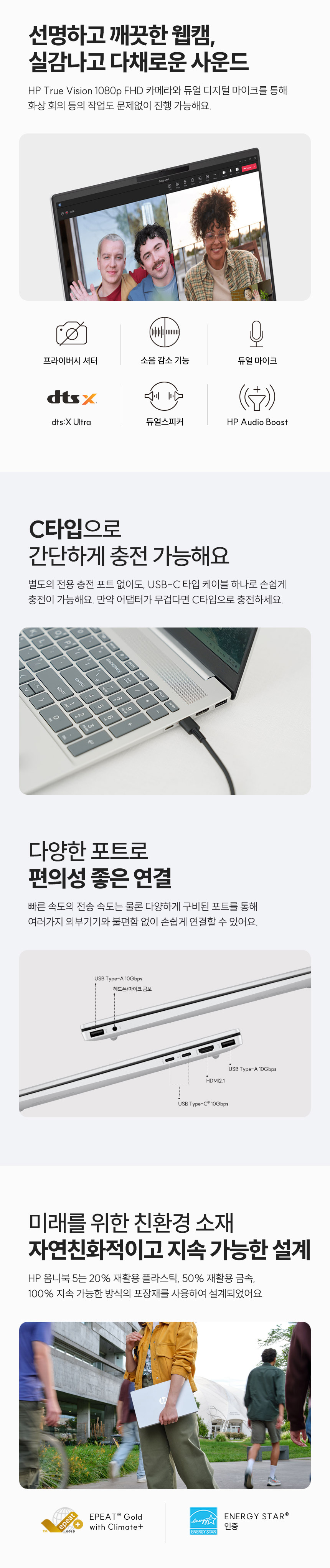 HP 옴니북5 16-af1090TU 인텔 울트라7-255U/16GB/512GB/16인치/2K/300nit/최신AI노트북