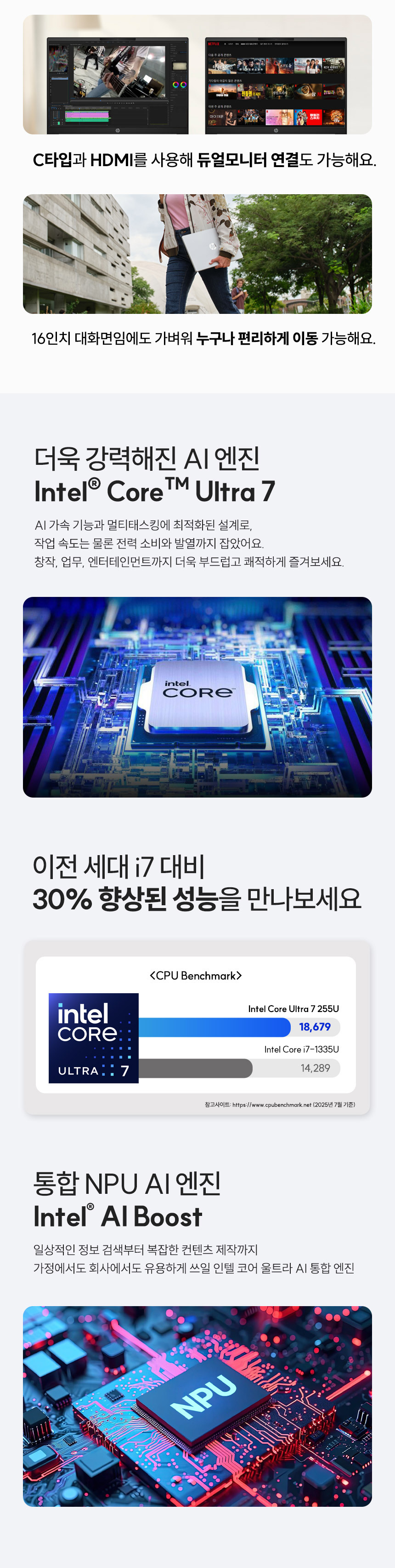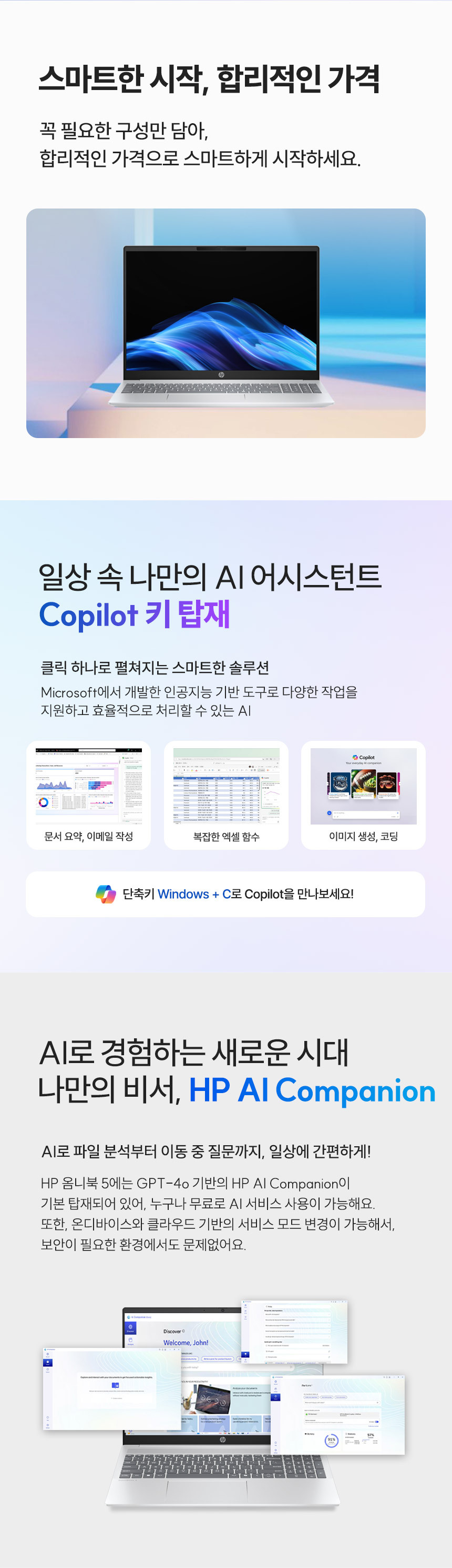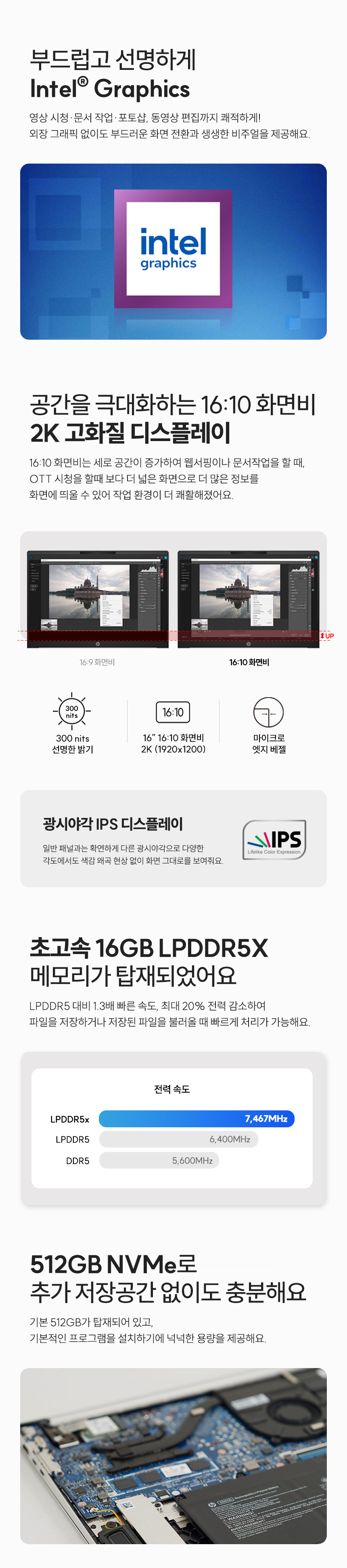 HP 옴니북5 16-af1090TU 인텔 울트라7-255U/16GB/512GB/16인치/2K/300nit/최신AI노트북