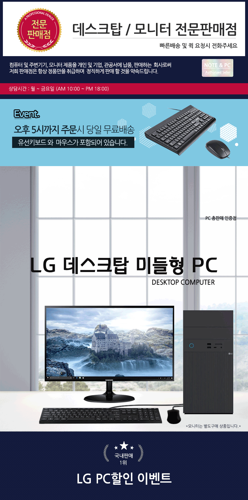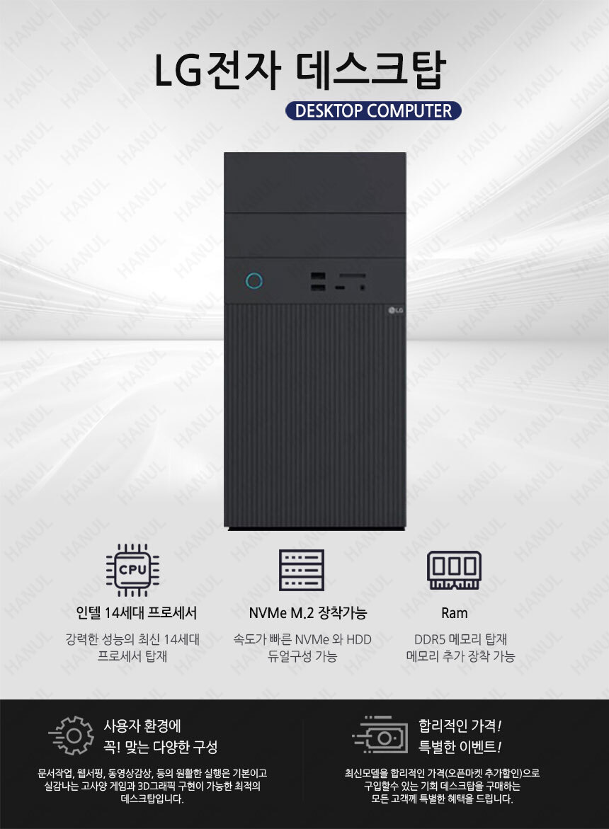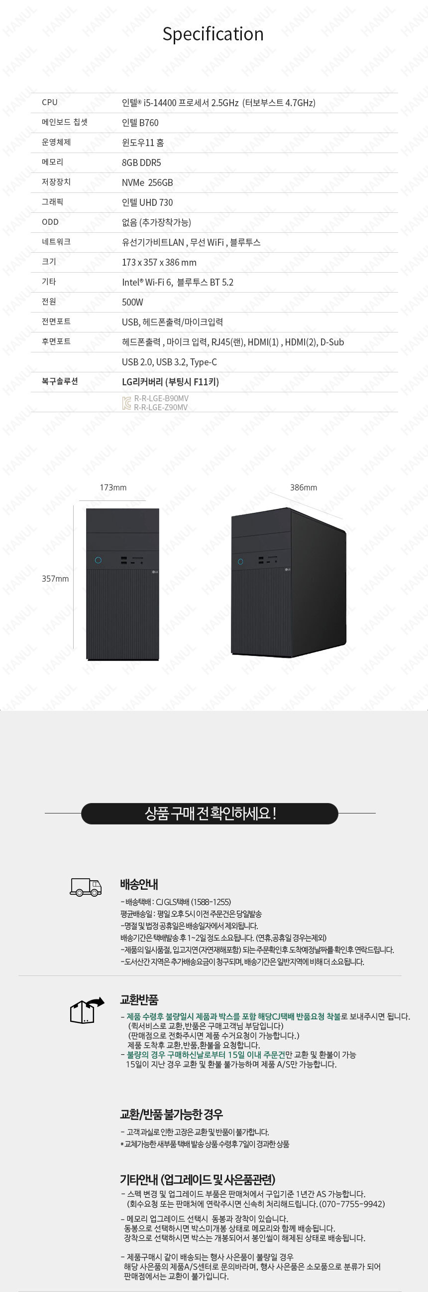 B90MV-AR45AE/14세대/I5-14400/8G/NVMe 256G/윈11 홈 데스크탑 LG