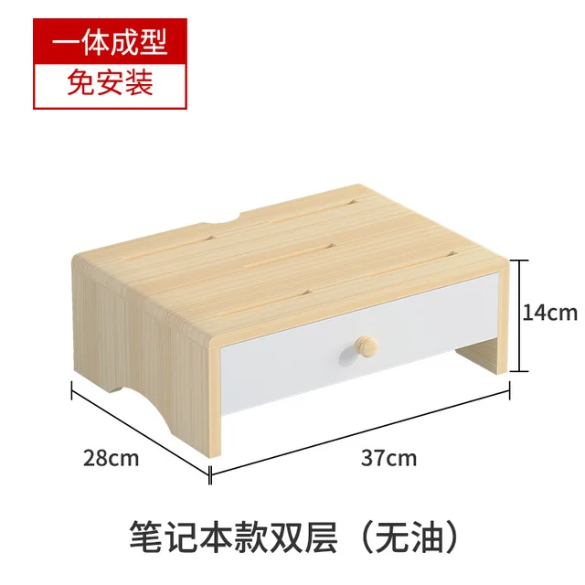 서랍이있는 단단한 나무 모니터 높이 스탠드 데스크탑 컴퓨터 선반 데스크탑 데스크 스토리지 스크린 워크 스테이션