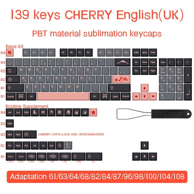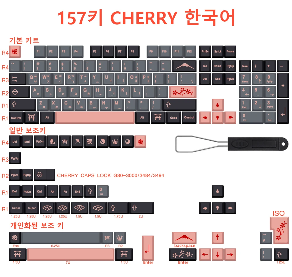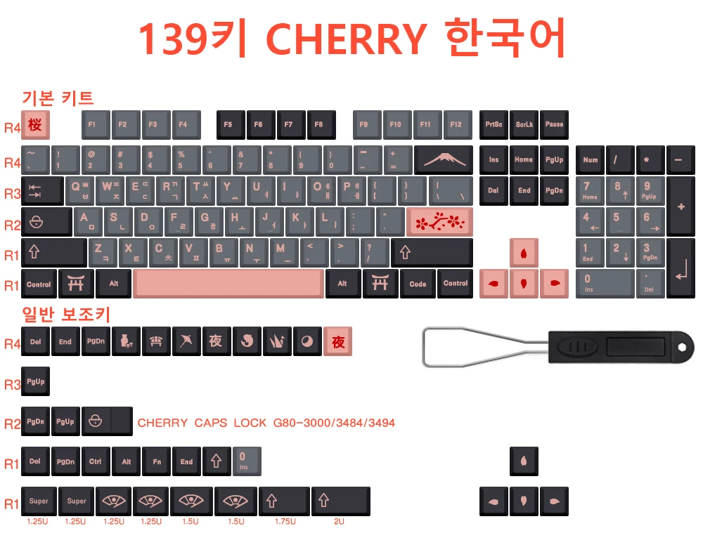 패키지 내용: 1 x 키캡 (전체 세트) + 1 x 키 풀러