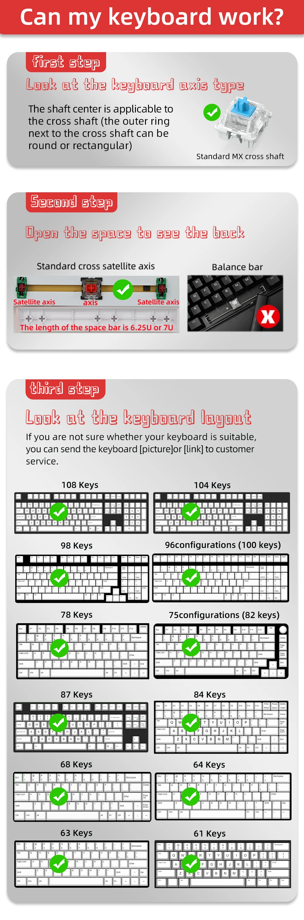 표준 ANSI GK61/63/64/67/68/RK836(71 키)/78/84/87/96(100 키)/980/104/108 MX 스위치 기계식 키보드 그 공간은 6.25u 또는 7u