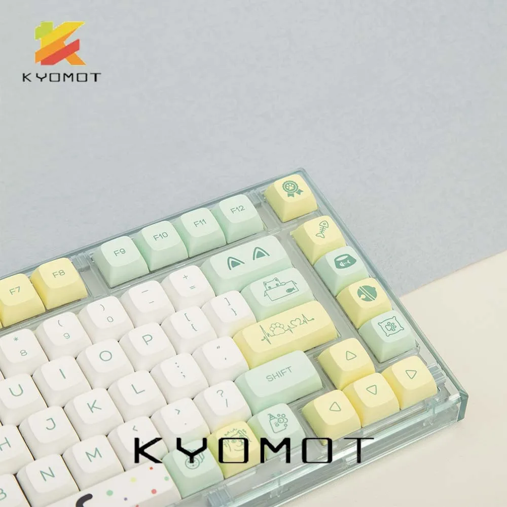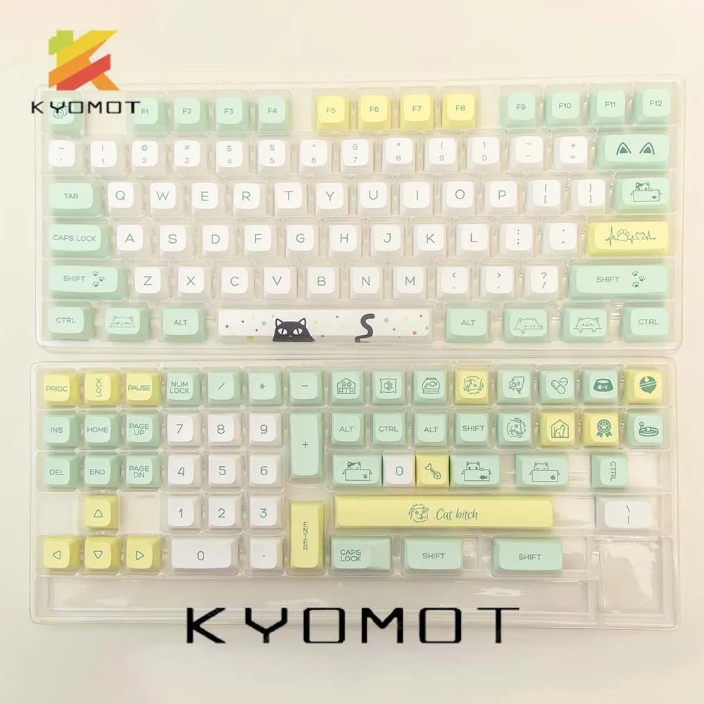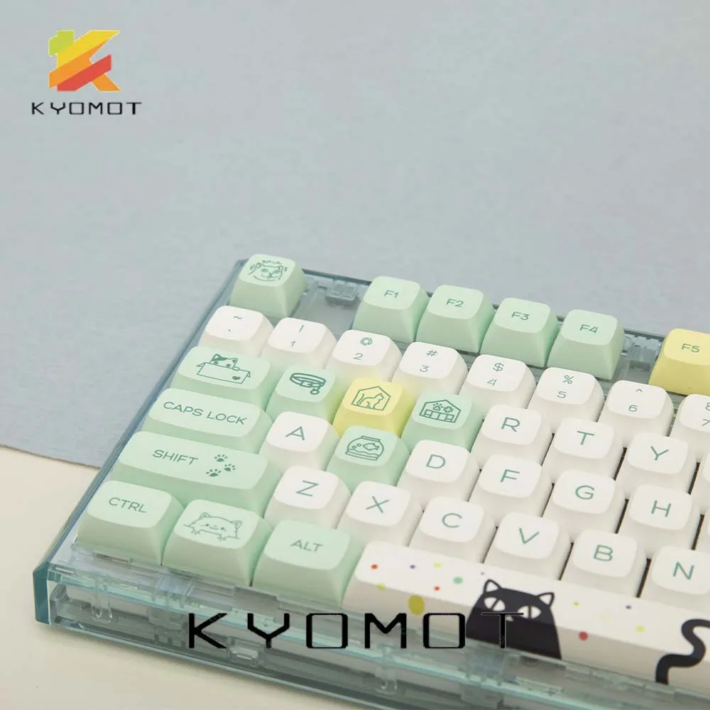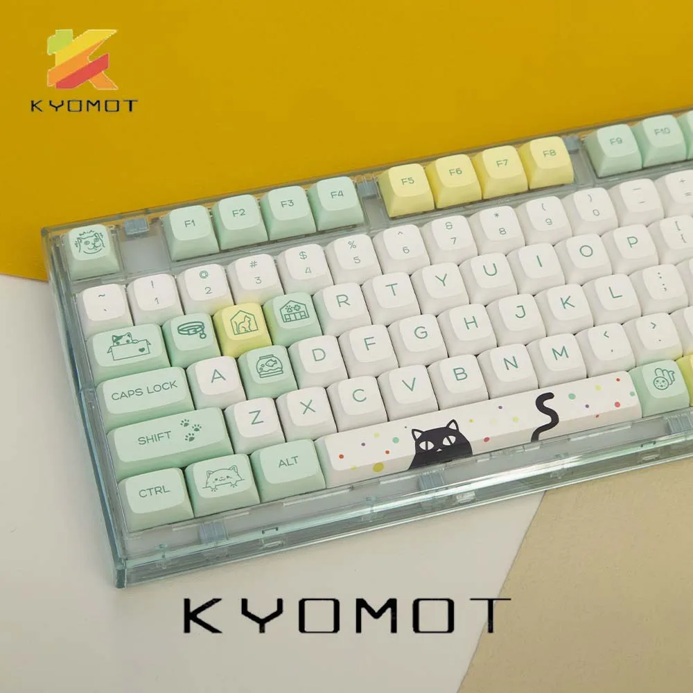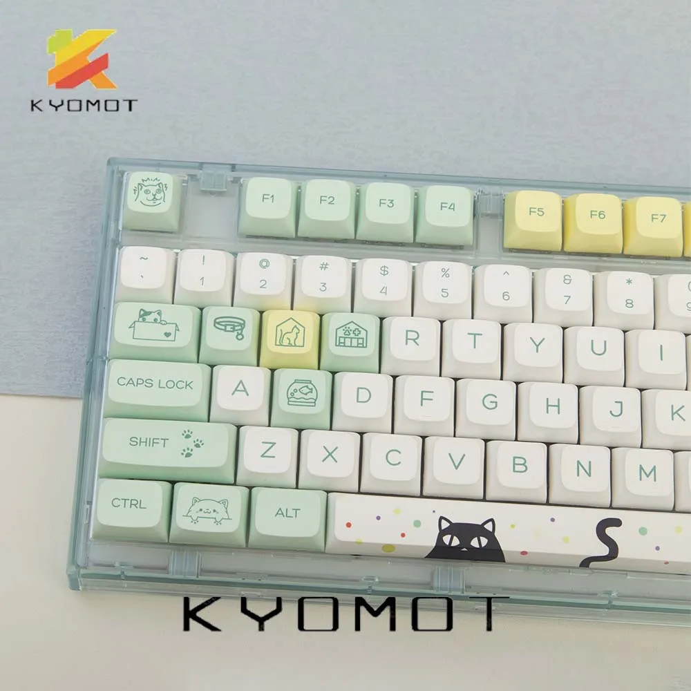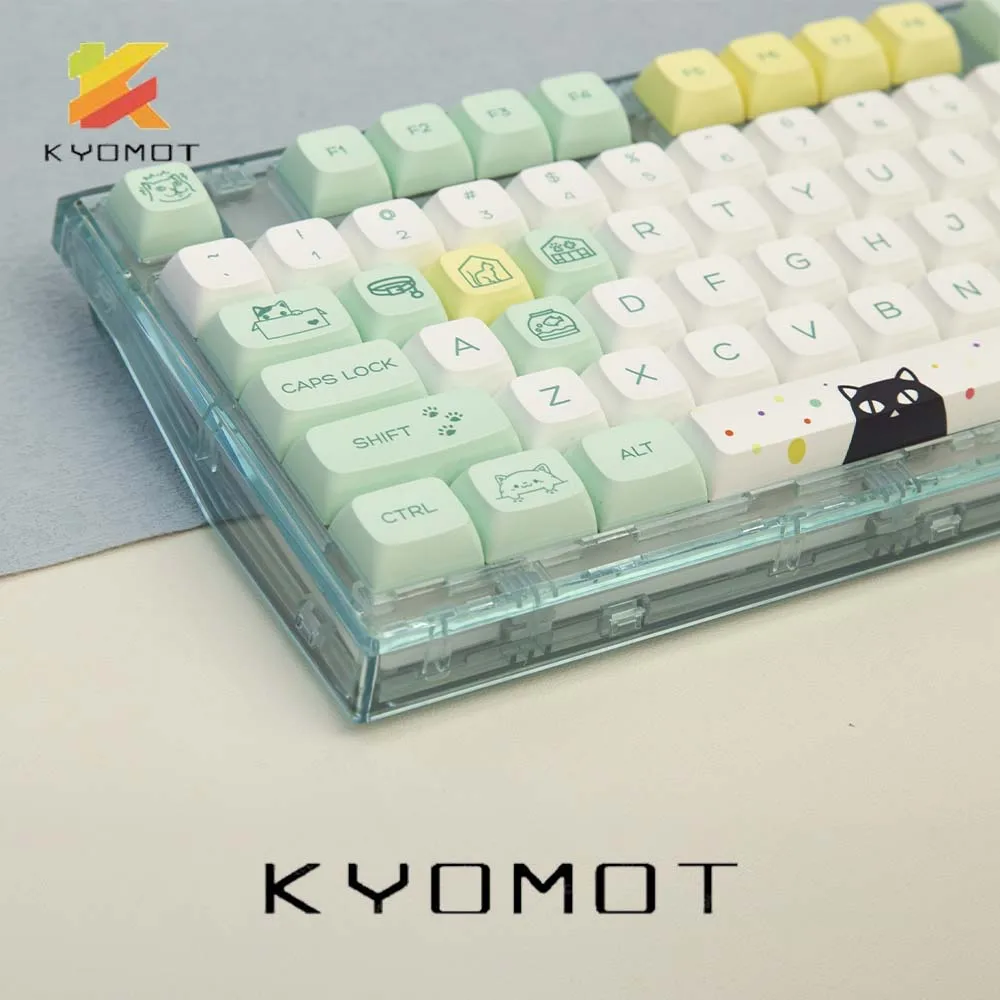 KYOMOT 131 키 귀여운 고양이 테마 키캡 MX 스위치 기계식 키보드 61/64/68/87/96/104/108 용 PBT 염료 승화 XDA 프로파일