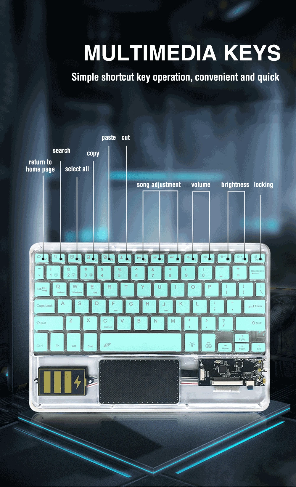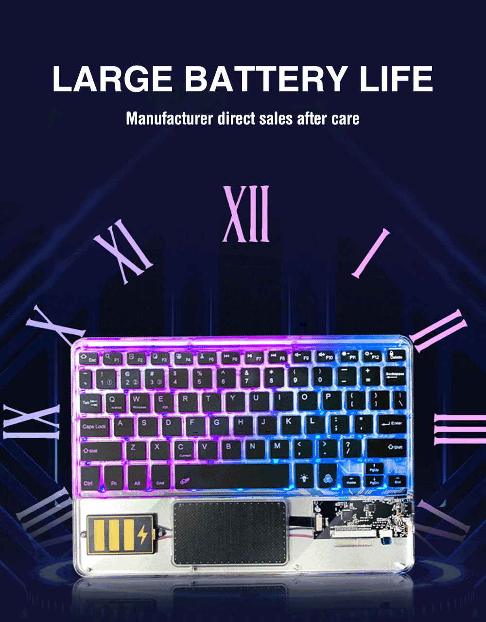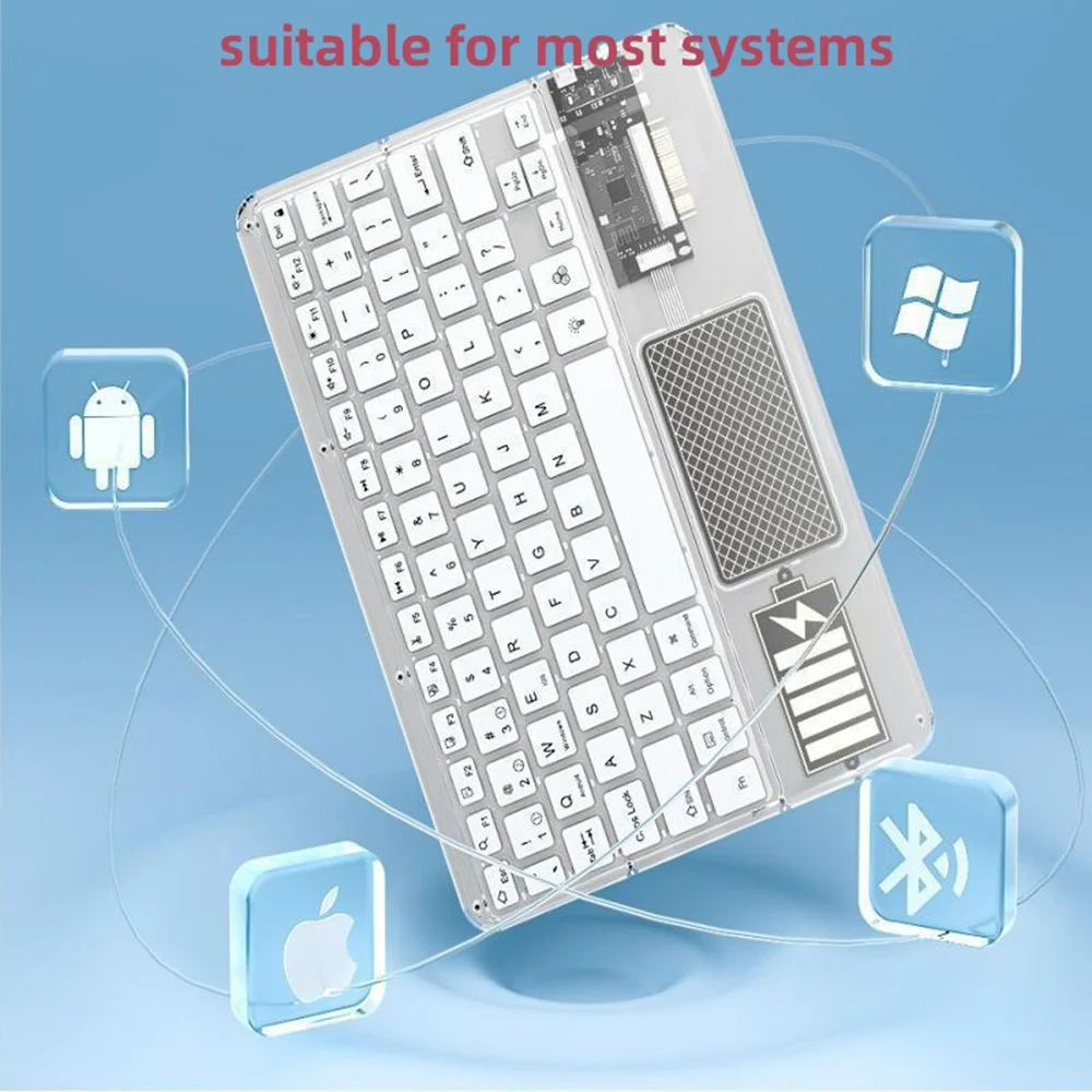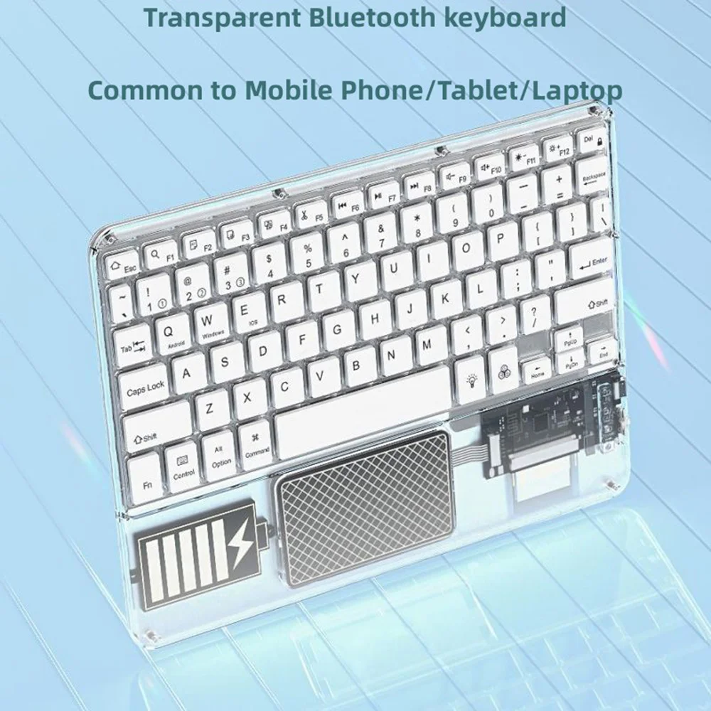 태블릿 키보드 무선 블루투스 터치패드 투명 RGB 충전식 패드 윈도우 태블릿용