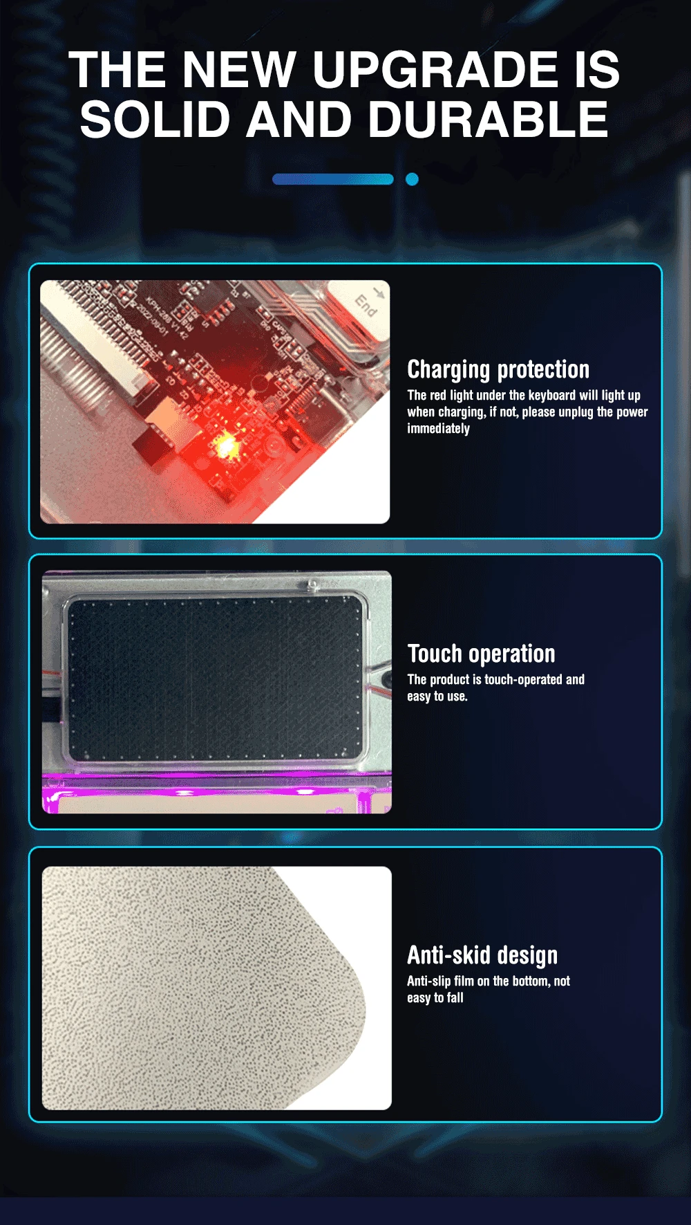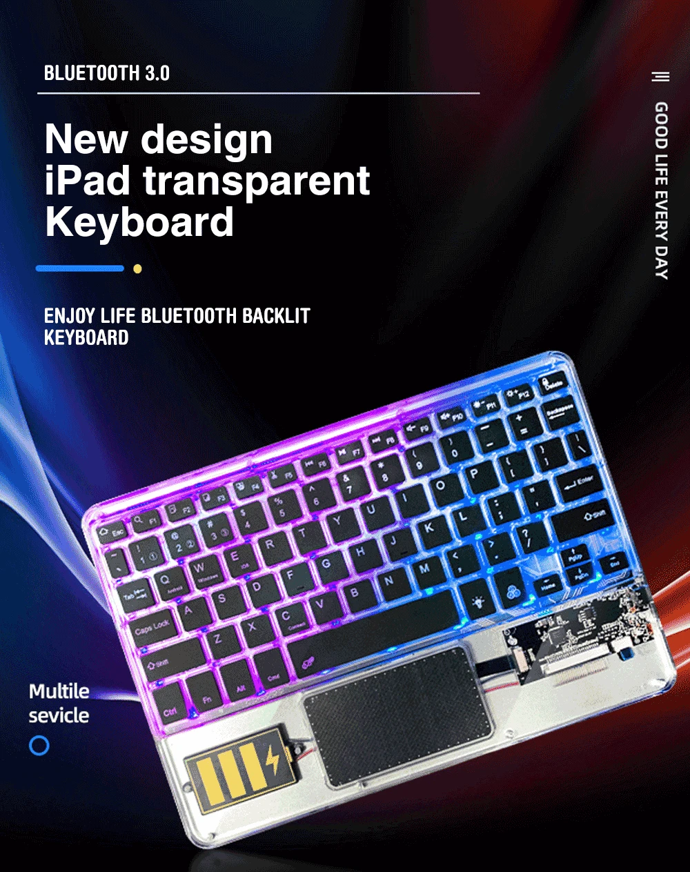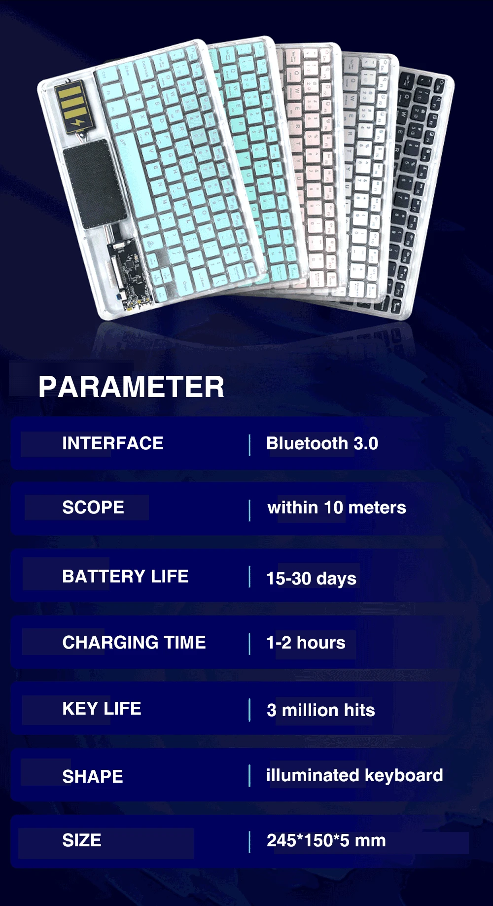 태블릿 키보드 무선 블루투스 터치패드 투명 RGB 충전식 패드 윈도우 태블릿용