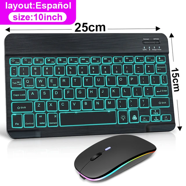 LED 무선 블루투스 키보드 RGB ipad 키보드 및 마우스, 스페인어 미니 백라이트 러시아어 키보드 전화 태블릿 ipad pro 11