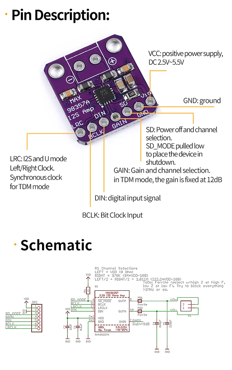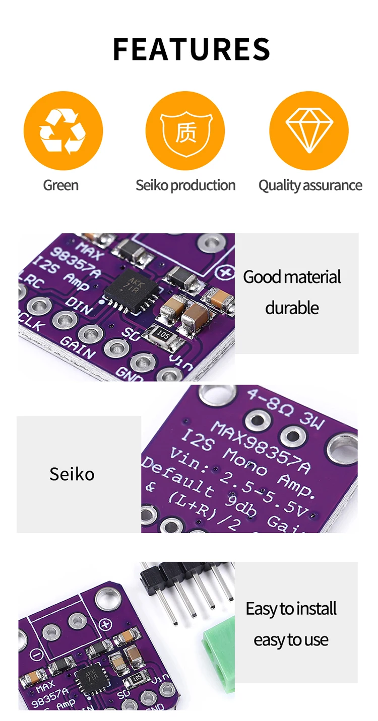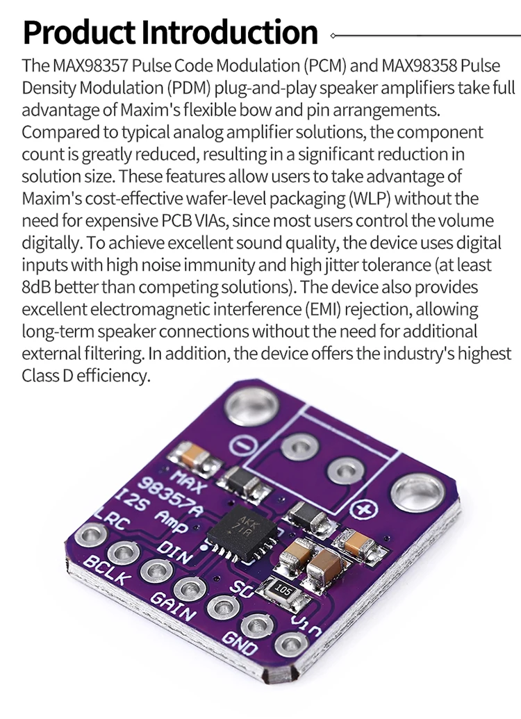 라즈베리 파이 Esp32 용 필터리스 오디오 보드 Max98357 I2S 3W 클래스 D 앰프 브레이크아웃 인터페이스 Da
