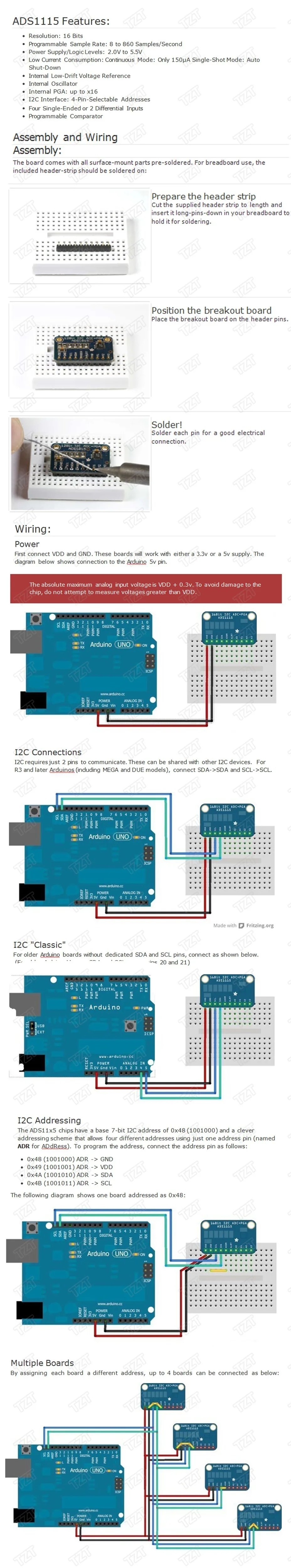 아두이노 RP용 프로 게인 앰프 ADS1115 16 비트 I2C 모듈 정밀 ADC 4 채널 개발 보드 2.0V 5.5V