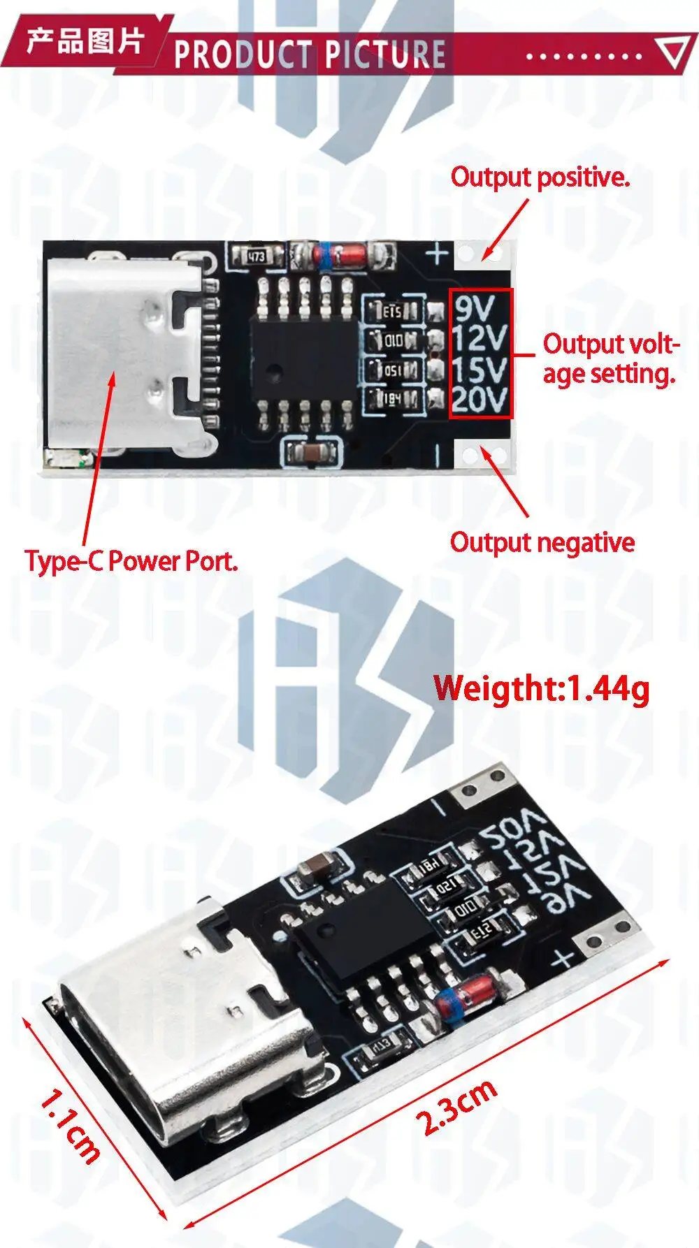 -C PD2.0 PD3.0 9V 12V 15V 20V 고속 충전 트리거 폴링 감지기 USB 부스트 전원 공급 장치 변경 모듈 충전