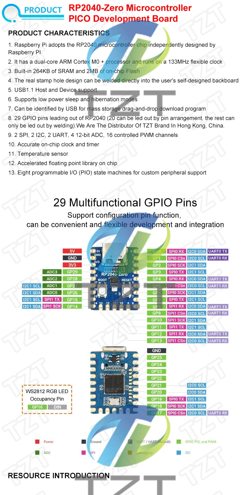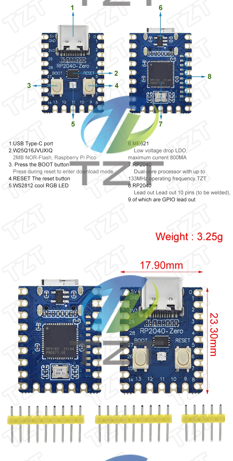 RP2040-Zero RP2040 라즈베리 파이 마이크로컨트롤러 PICO 개발 보드 모듈 듀얼 코어 Cortex M0 프로세서