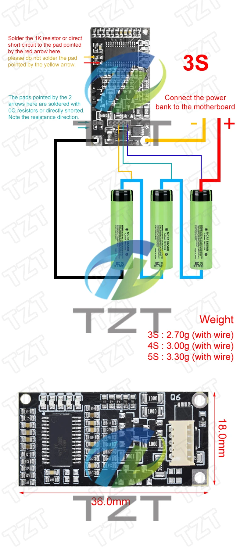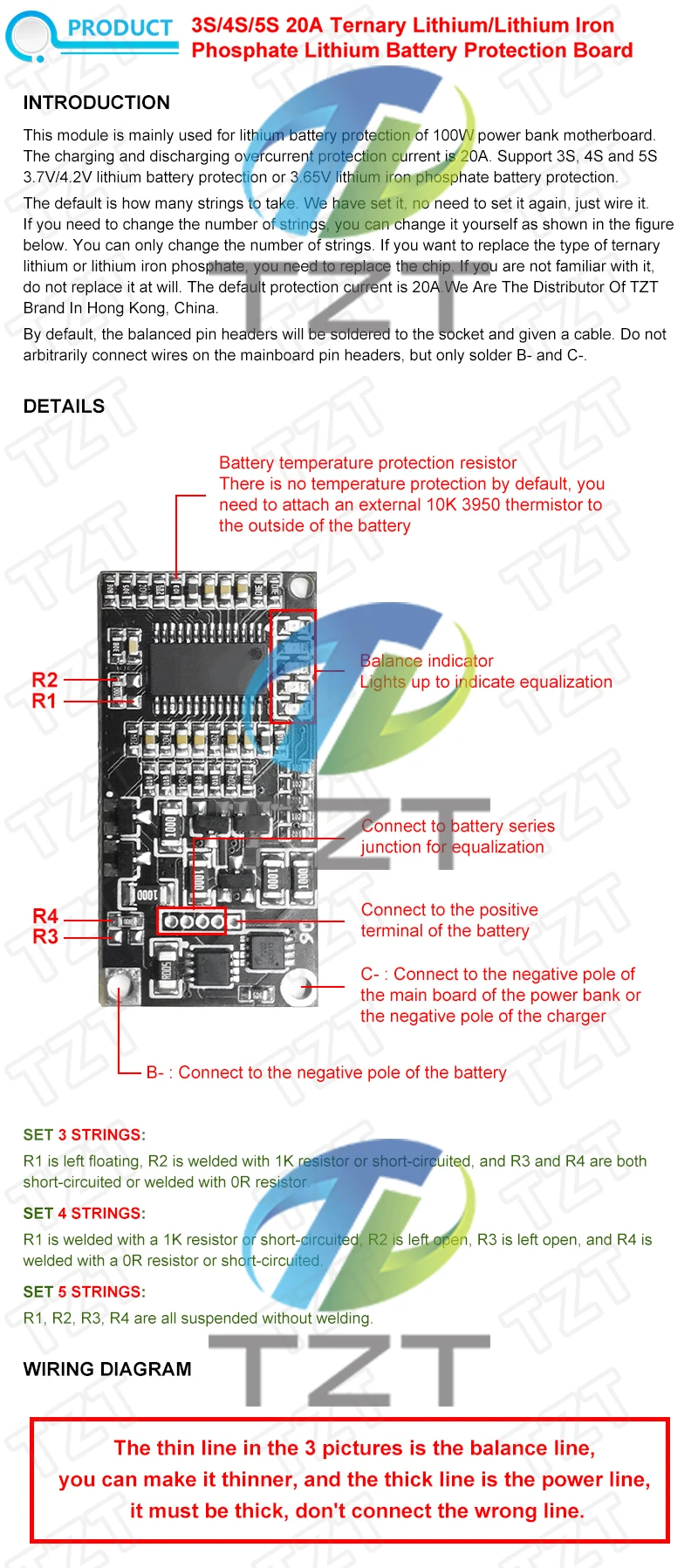 3S 4S 5S 20A BMS 보드 3.7V 4.2V 18650 삼원 리튬 배터리 보호 3.65V LiFePO4 밸런스 포함