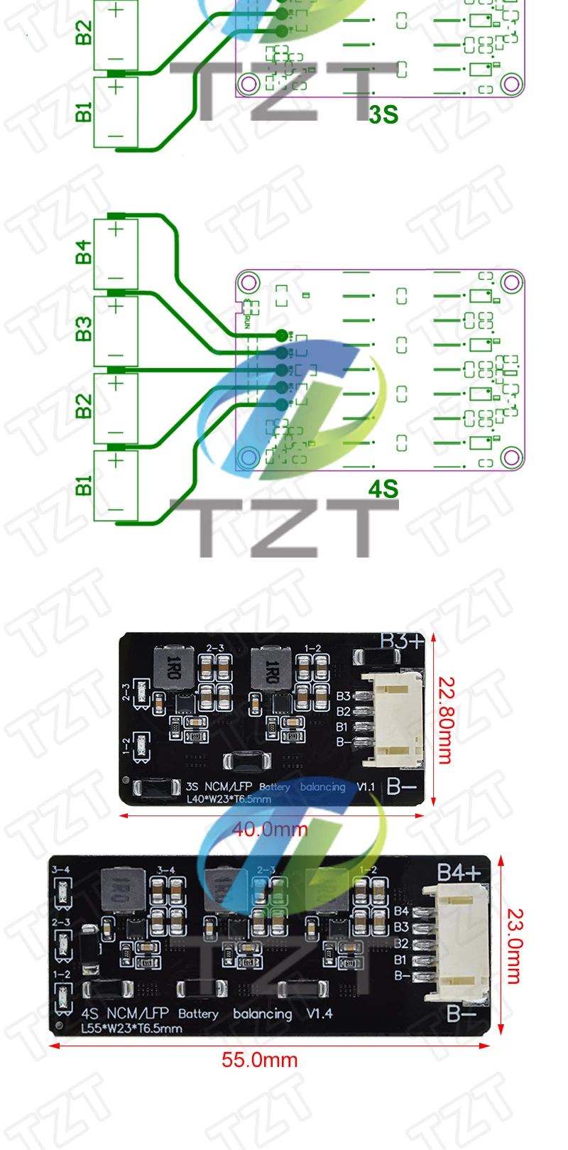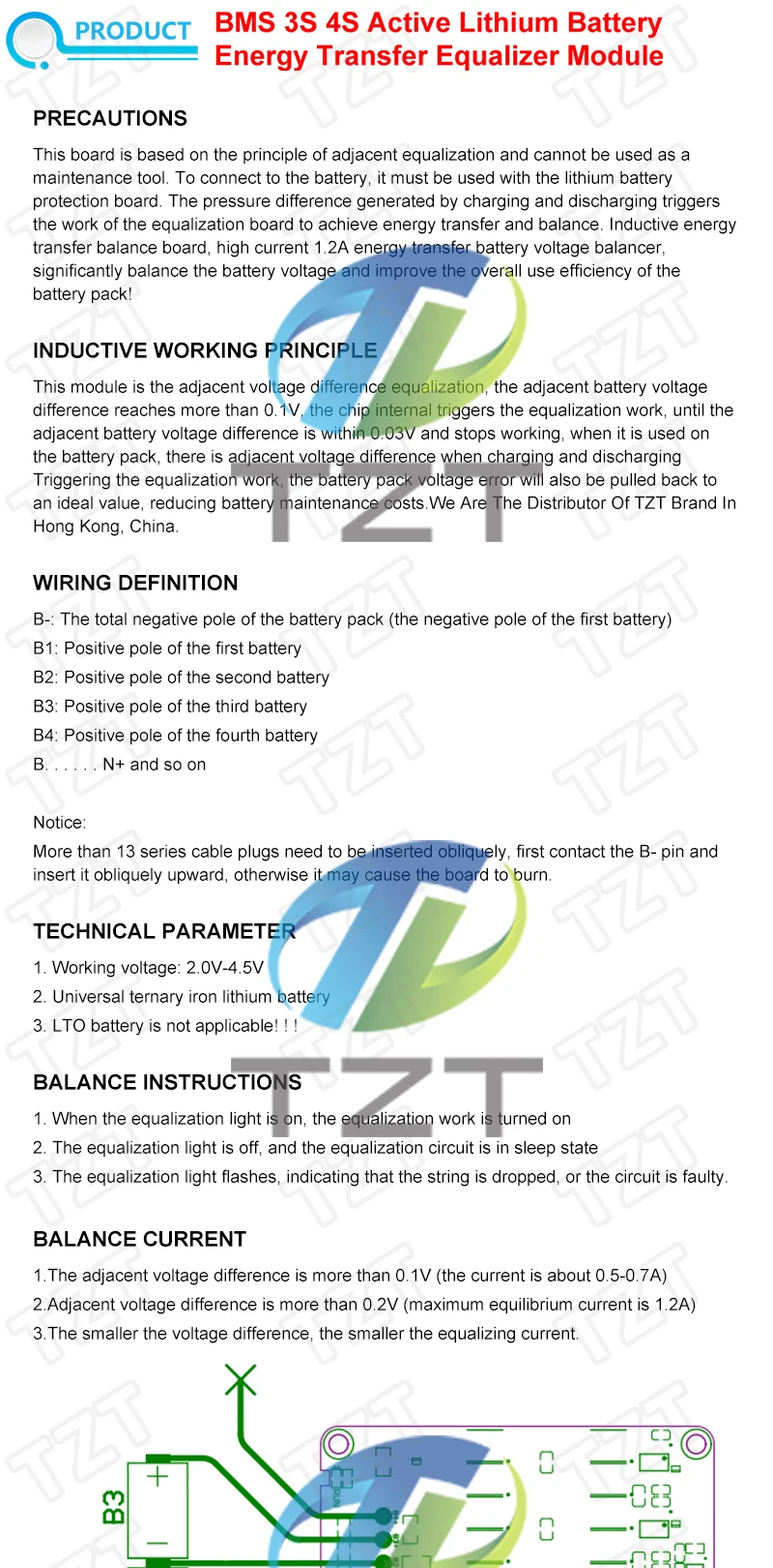 TZT BMS 액티브 밸런서 보드 에너지 전달 이퀄라이저 모듈 유도 버전 1.2A Lifepo4 Lipo 리튬 이온 배터리