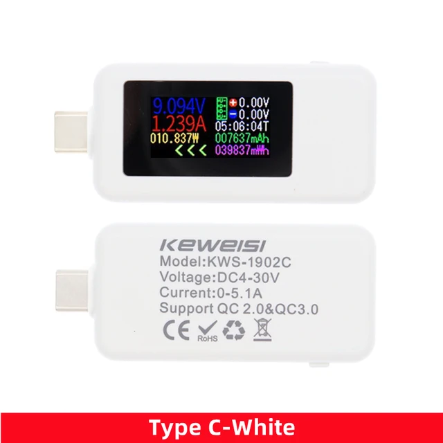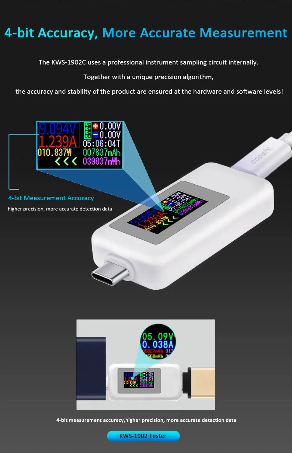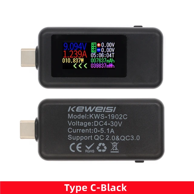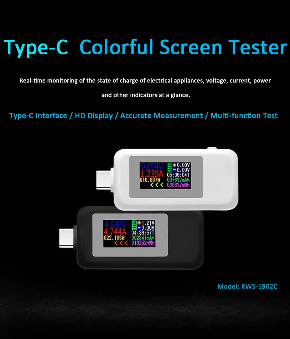 Type-C USB 테스터 컬러 디스플레이 10 in 1 4-30V 전압계 타이밍 전류계 디지털 모니터 차단 전원 표시기 충전기 테스터