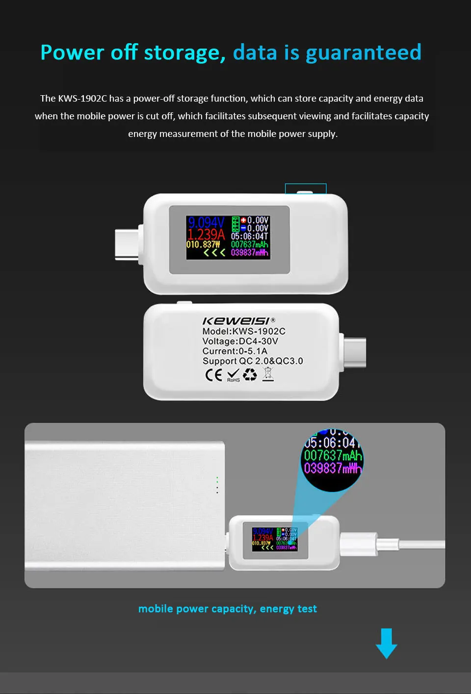 6. 전원 차단 저장 기능을 사용하면 모바일 전원이 차단되면 용량 및 에너지 데이터를 저장할 수있어 후속 시청에 편리합니다. 모바일 전원의 에너지 용량을 측정하는 데 편리합니다.