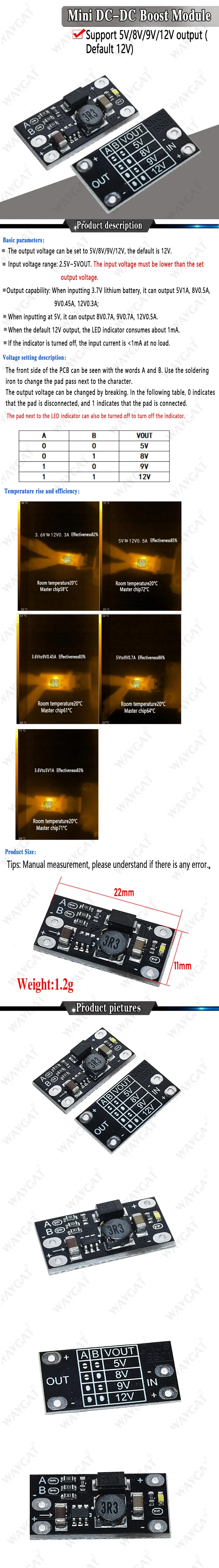 다기능 미니 부스트 모듈 스텝 업 보드 1.5A 5V 8V 9V 12V LED 표시기 DIY 전압 3.7V 리튬 배터리