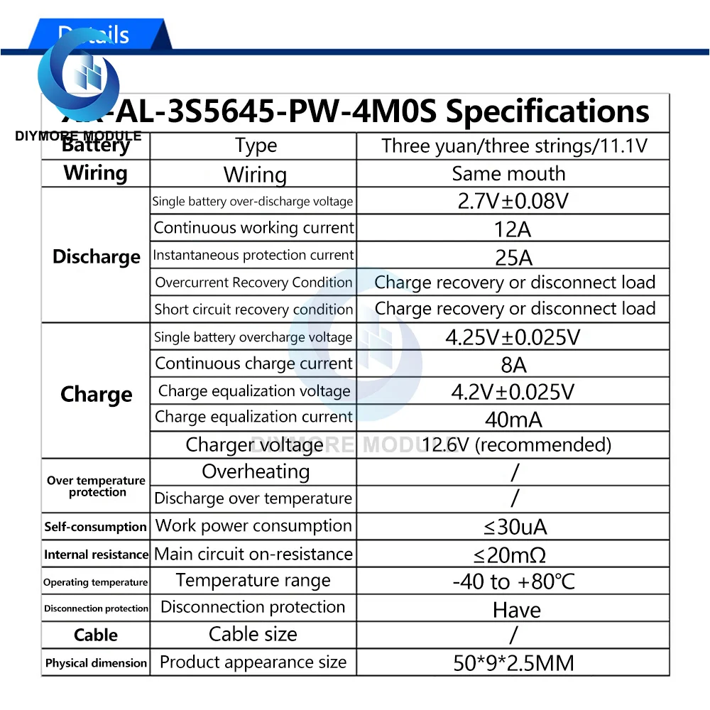 상품명: 3S 11.1V 12A, 밸런스드 리튬 배터리 보호 보드 포함