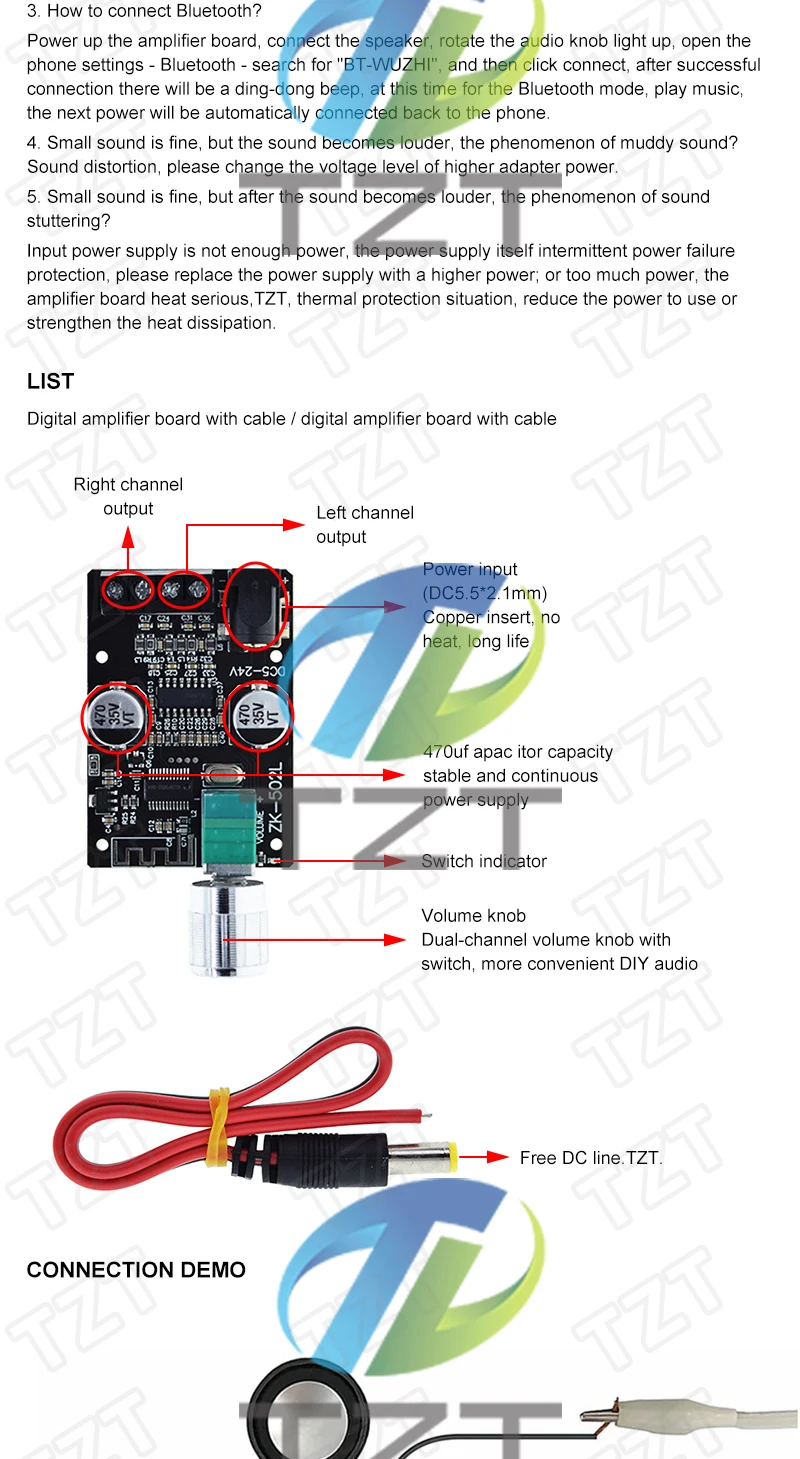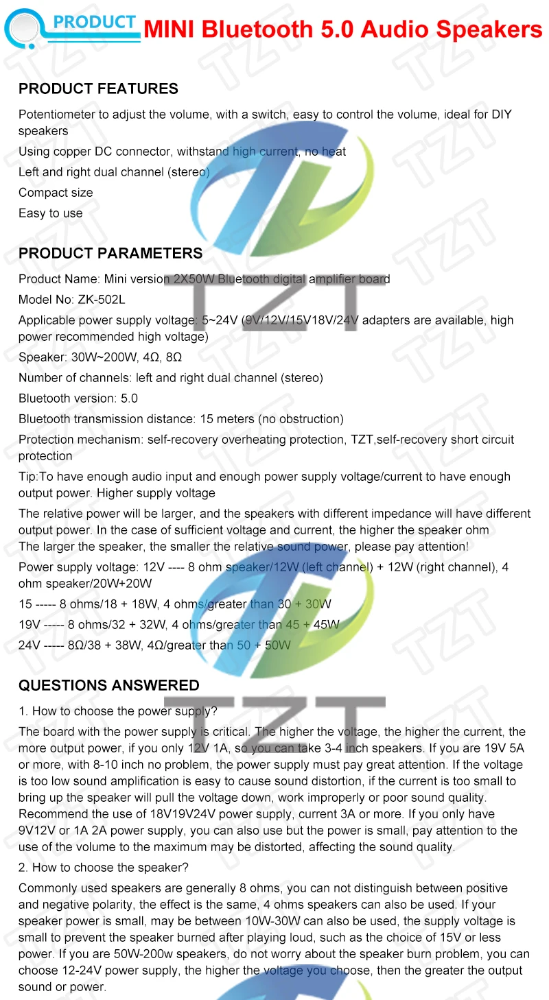 ZK-502L 블루투스 5.0 무선 오디오 앰프 스테레오 usb 수신기 홈 시어터 사운드 스피커