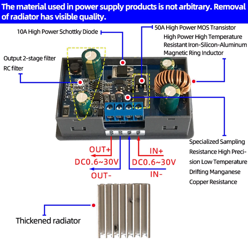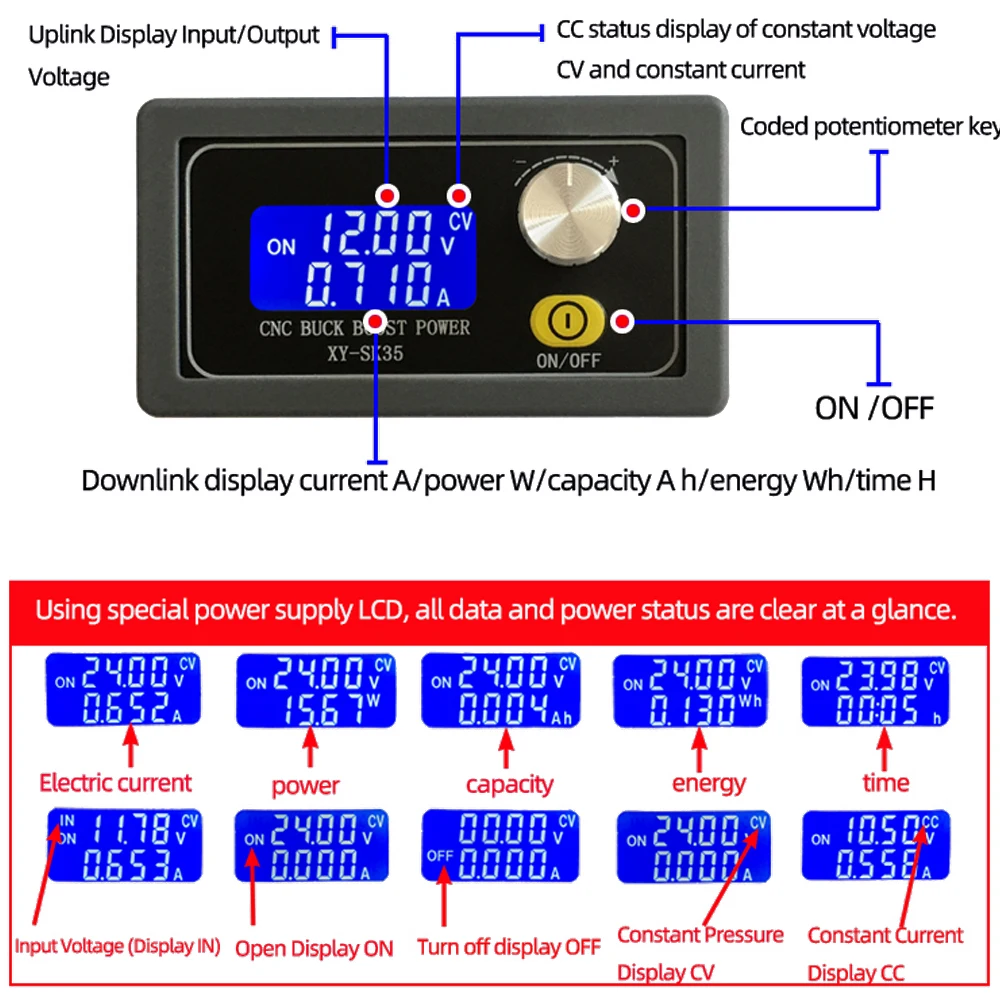 CNC DC DC 벅 부스트 컨버터 CC CV 0.6-30V 전원 모듈 조정 가능한 실험실 규제 스텝 다운 전원 공급 장치 모듈