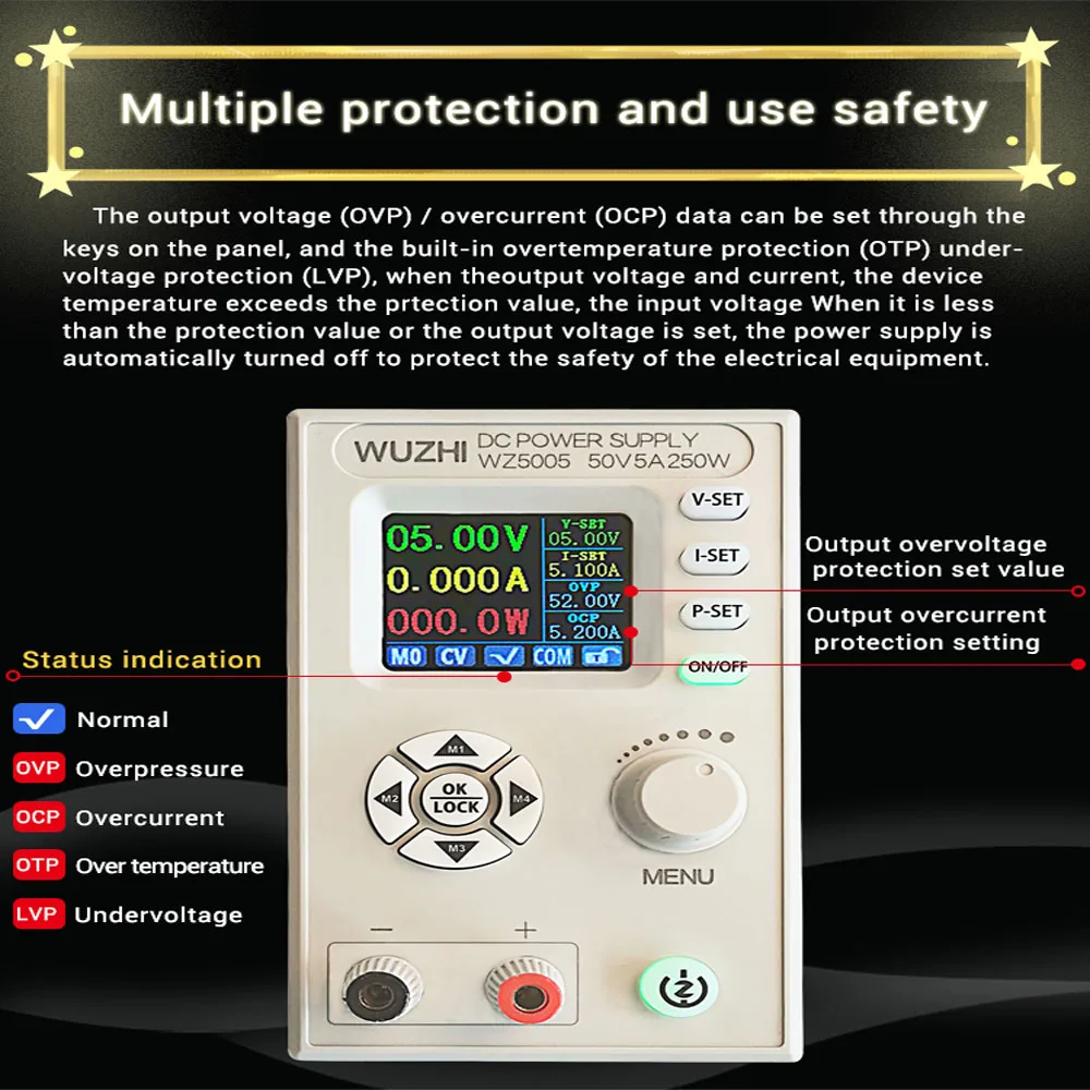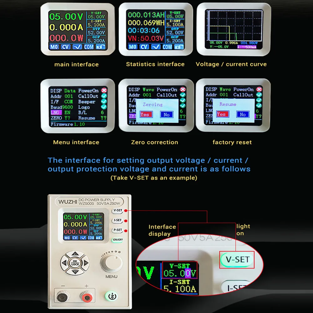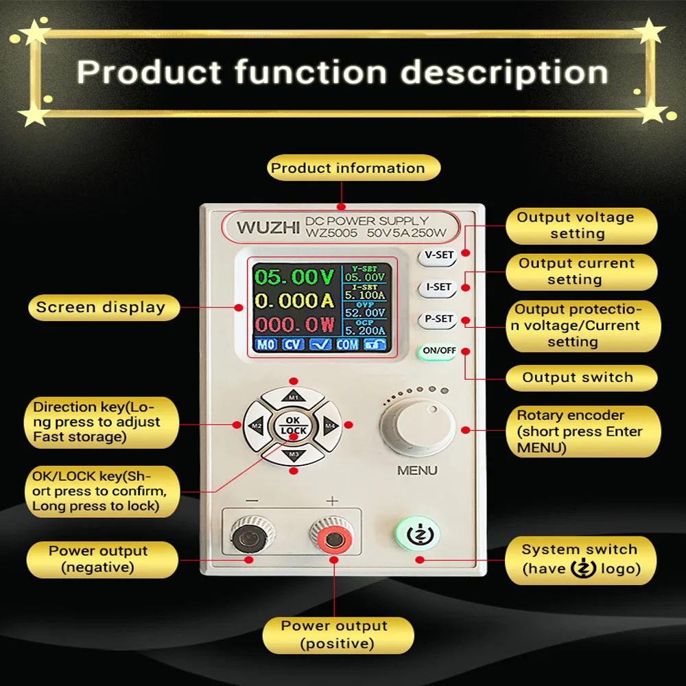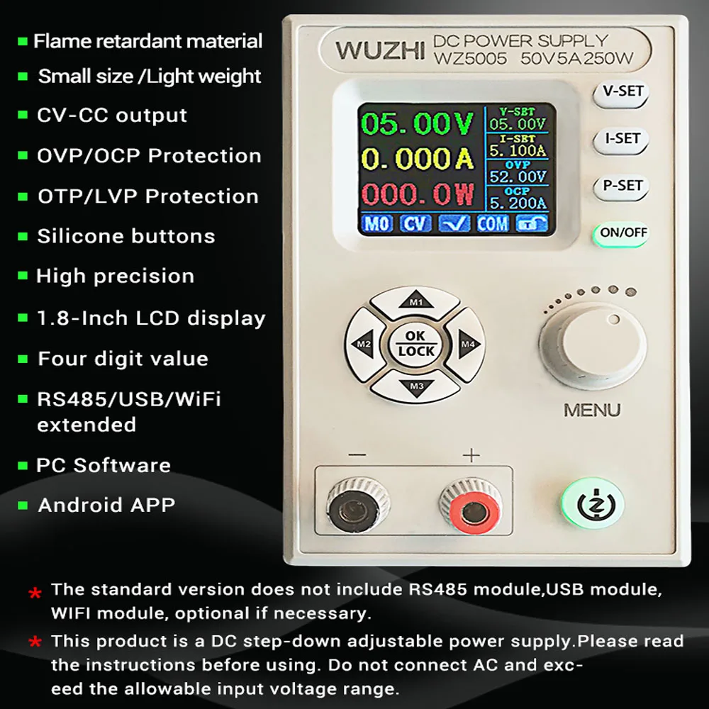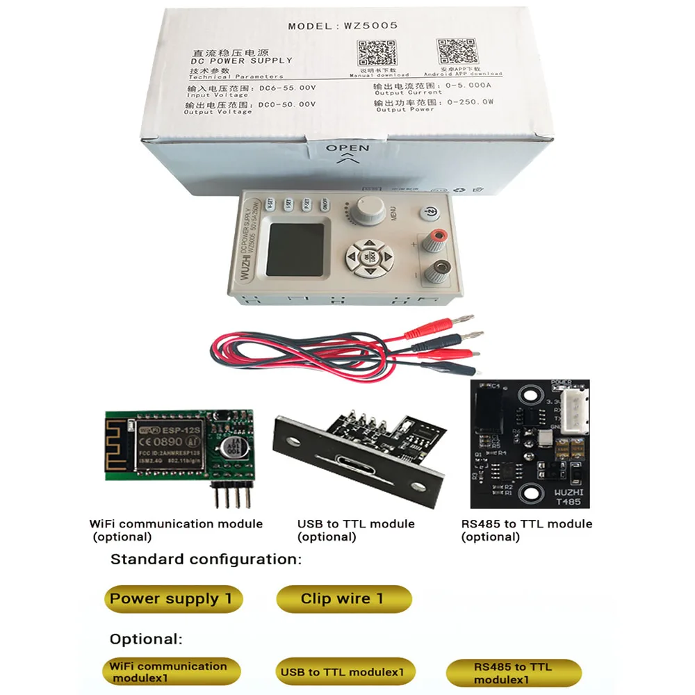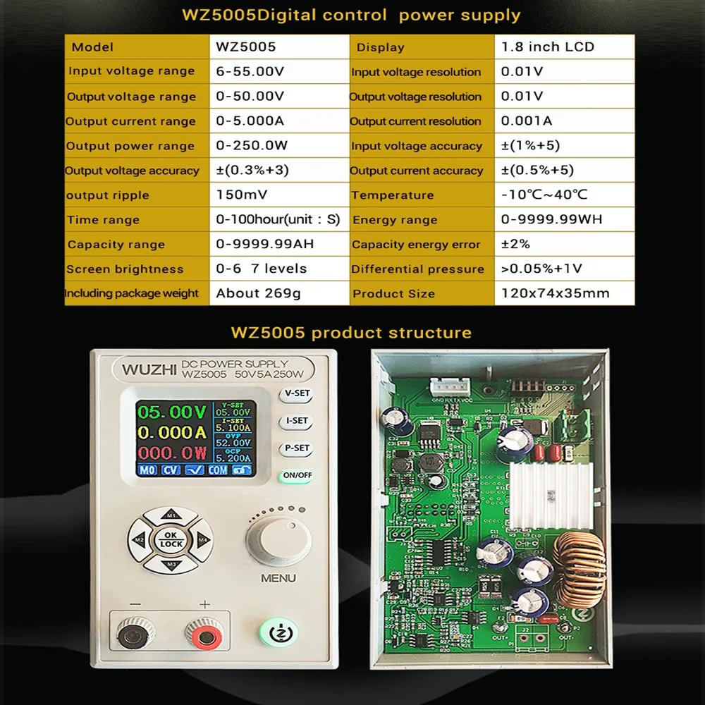 WZ5005 DC 벅 컨버터 전원 모듈 CC CV 250W 조정 가능한 규제 실험실 가변 LCD 디스플레이 전원 공급 장치