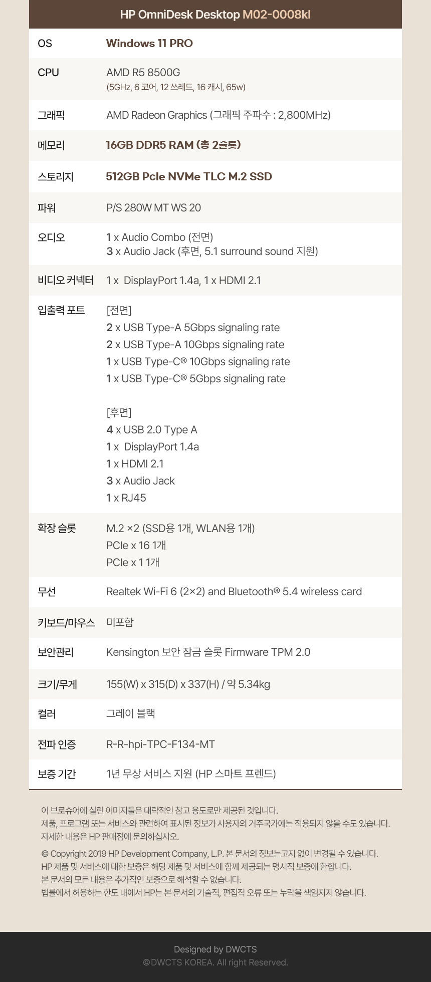 HP 옴니데스크 M02-0008kl 16GB 512GB WIN11 / 사무용 인강용 가성비 가정용PC 데스크탑
