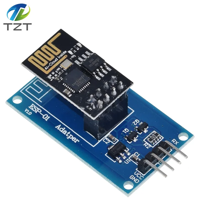 ESP-01 Wi-Fi 모듈용 어댑터 모듈. 3.3V 전압 조정기 회로 및 온보드 레벨 변환 회로는 5V 마이크로 컨트롤러를 ESP-01 Wi-Fi 모듈과 함께 사용하기 쉽게 할 수 있습니다.