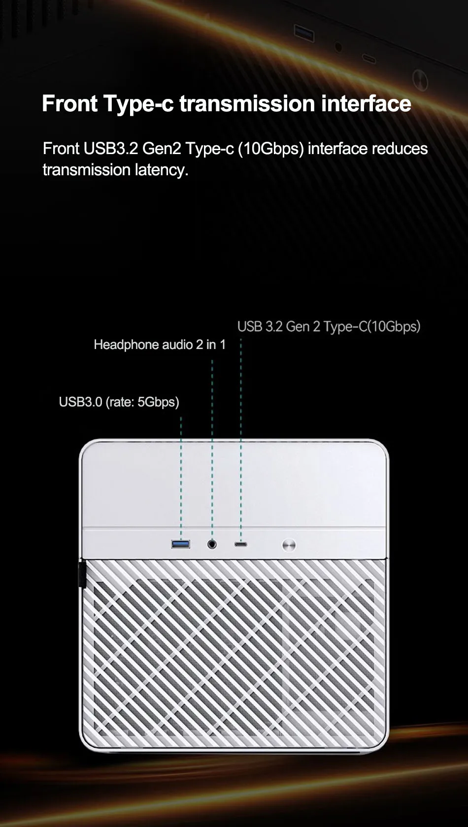 전면 인터페이스: 1 * USB3.0/1 * USB3.2 Gen2 유형-c/오디오 + 마이크 (2 in 1)