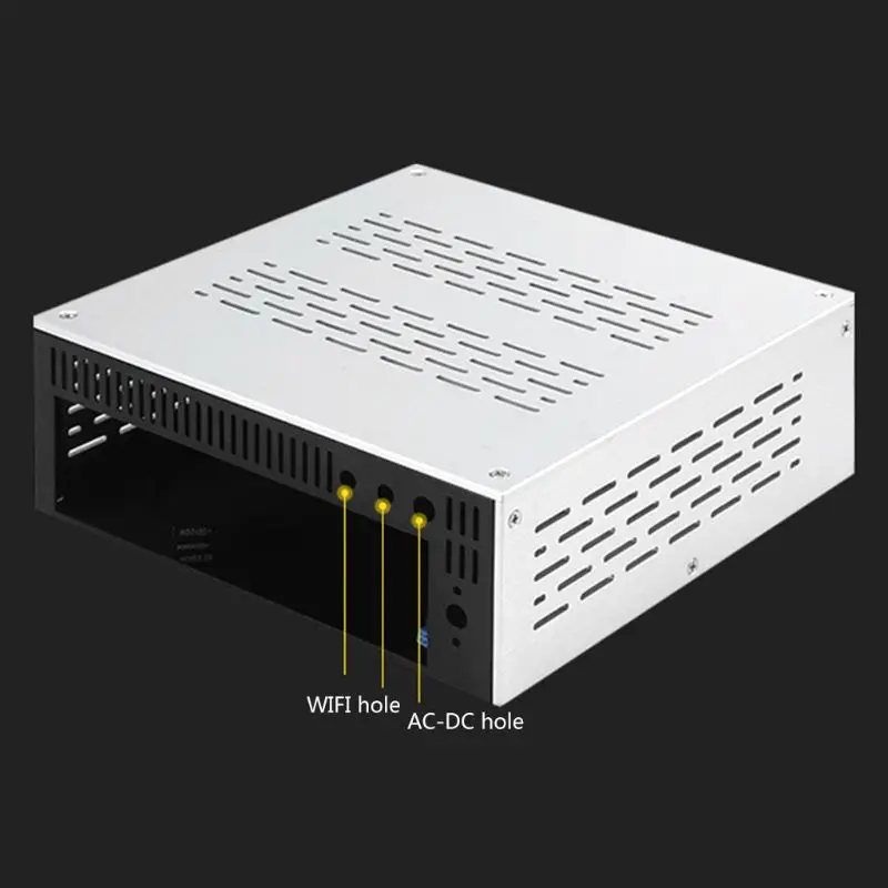 The top cover is also equipped with heat mesh, and the mesh hole position just covers the CPU radiator position.